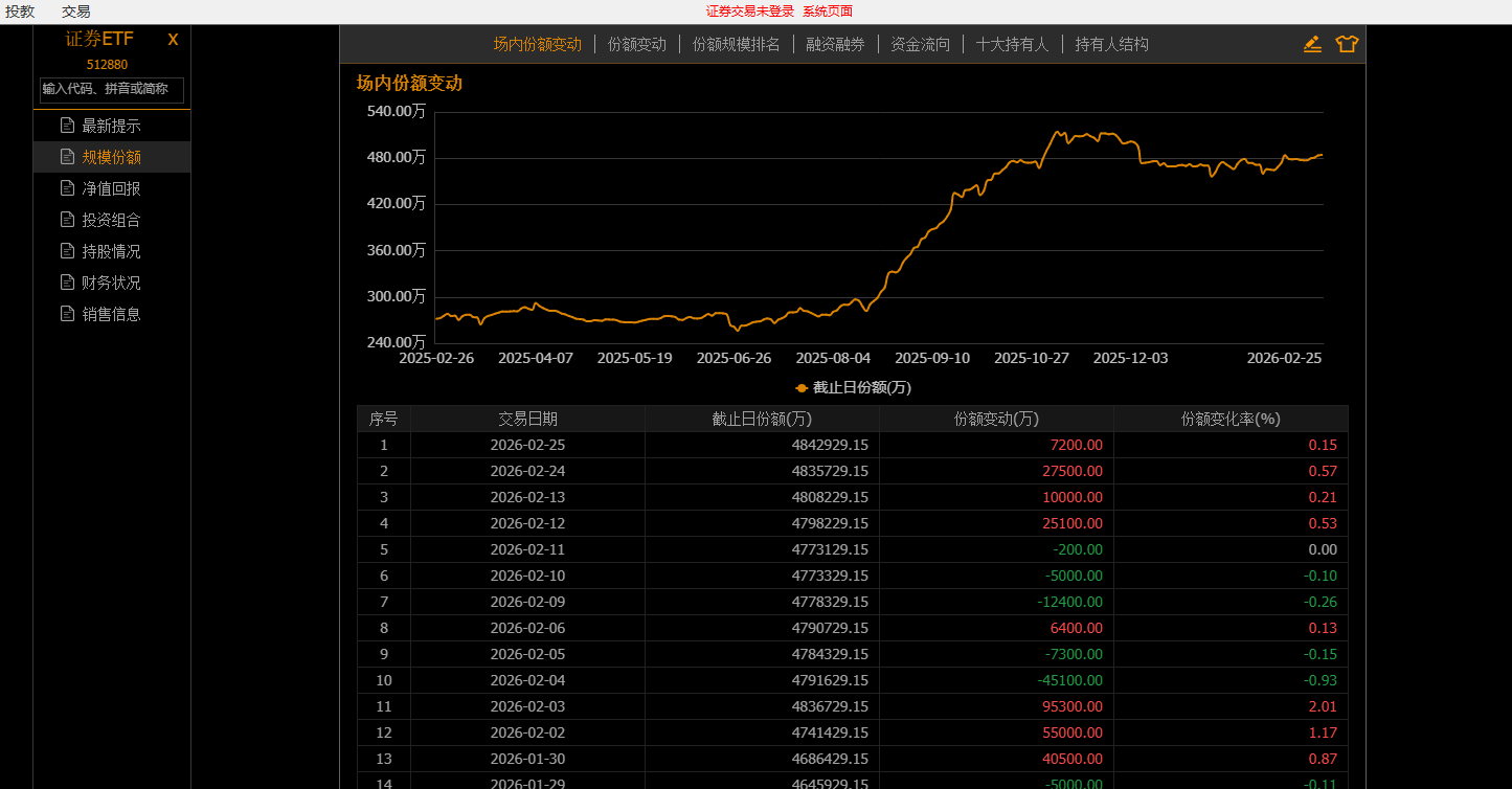证券对应最大份额的ETF512880 证券ETF,汪汪队已经连续4天净买入了站