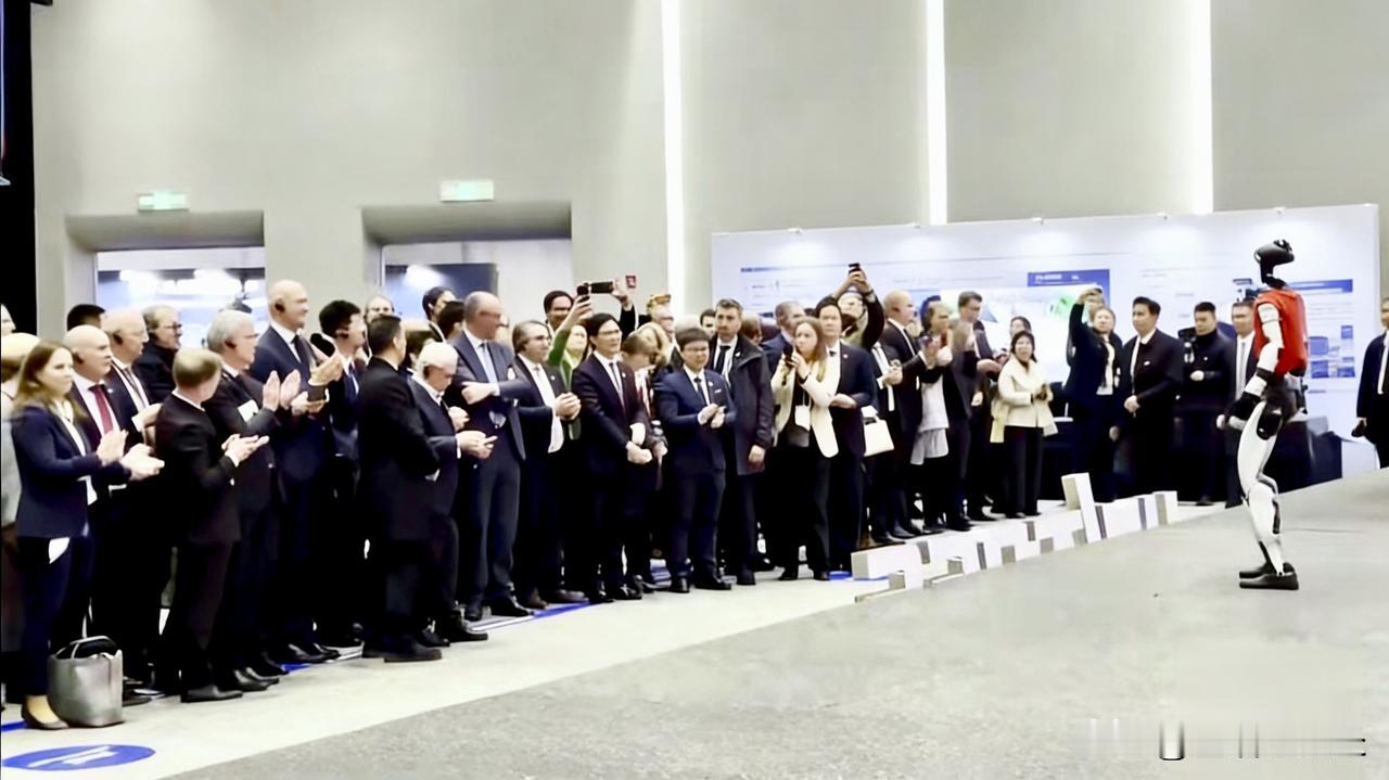 情不自禁竖起大拇指,德国总理默茨看着中国的机器人表演,虚心地低下头,竖起了大拇指