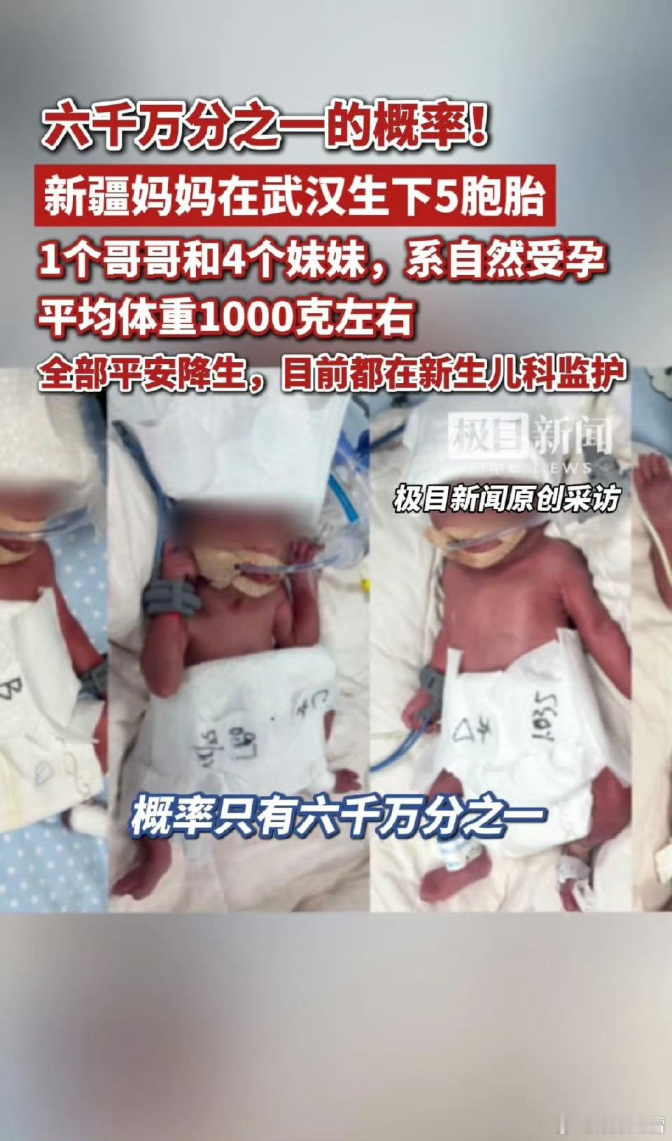 从新疆到武汉的千里奔赴,20余位医护15分钟紧急集结护航,五个小宝贝体重870克起,评分均达标~为伟大母爱点赞,向白衣天使致敬,愿五福临门的小家庭被温柔以待!滚滚锐评 24岁女生成功诞下1男4女5胞胎