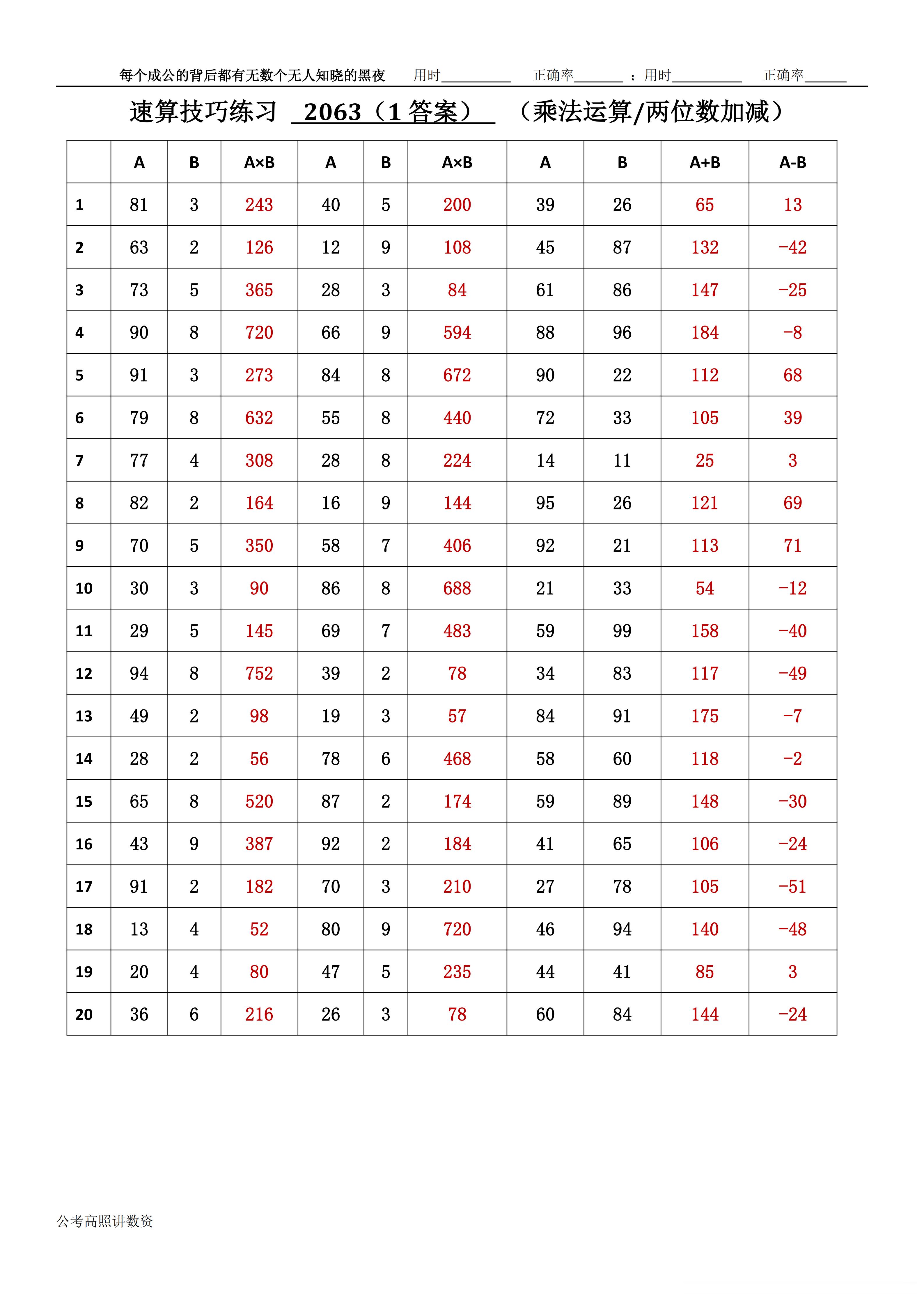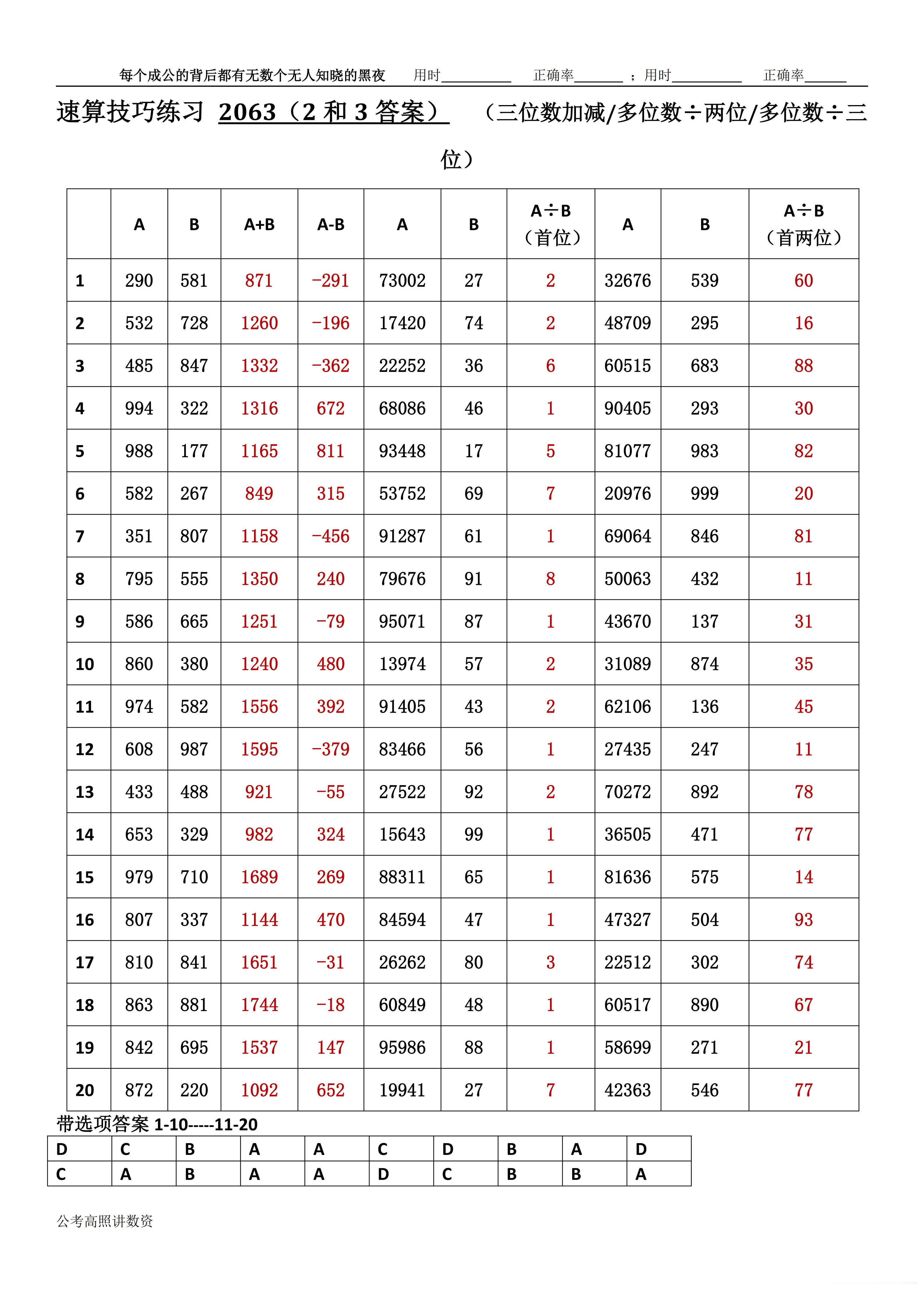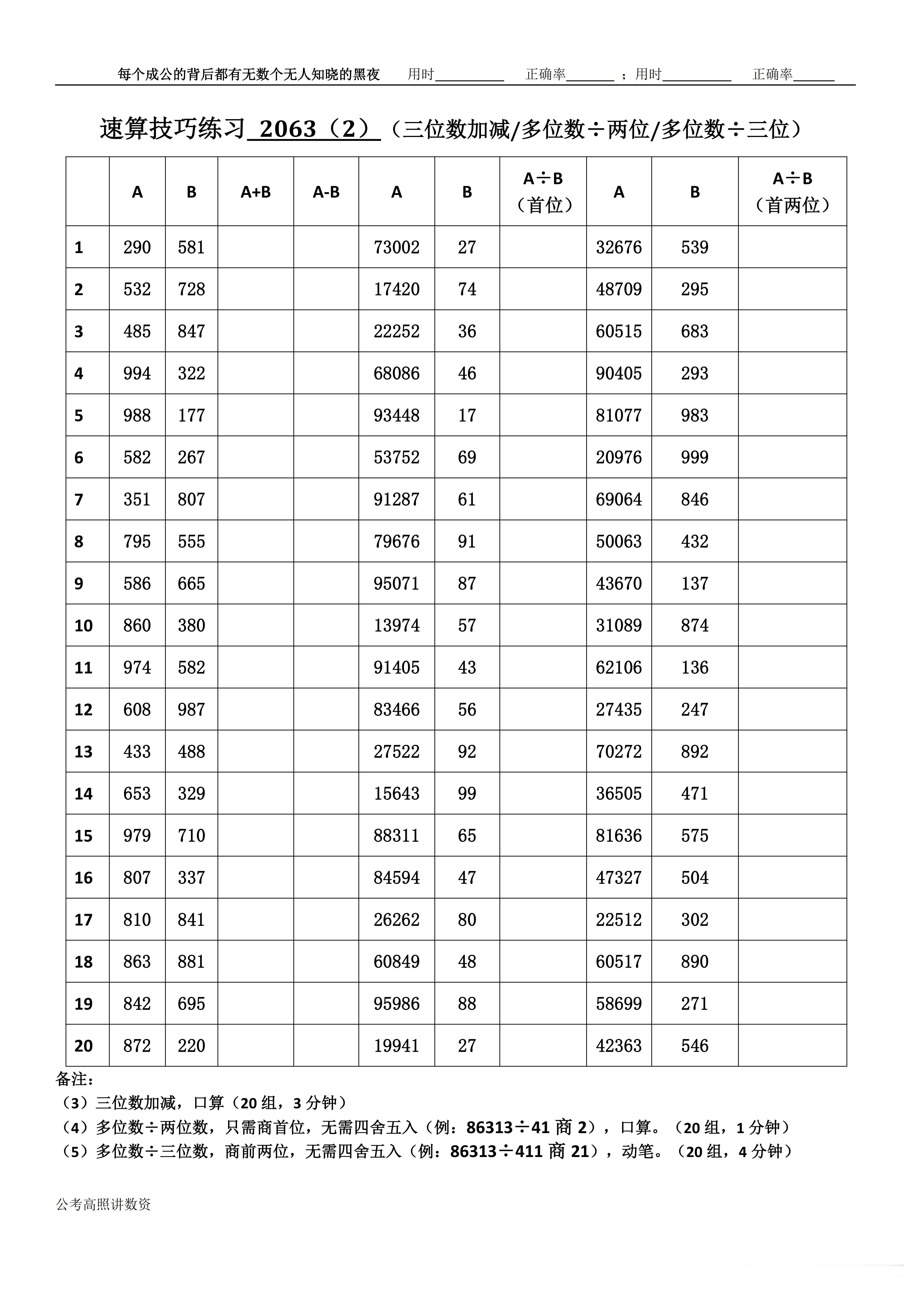 跟着高照练速算决战公考 速算练习2063