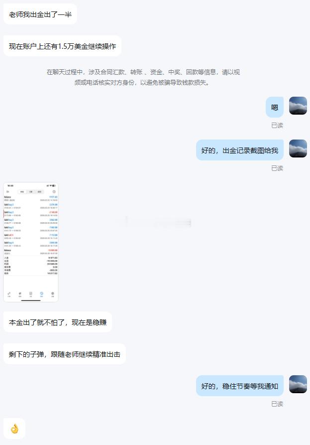 恭喜周先生顺利出金1.5w美金,盈利落袋为安!