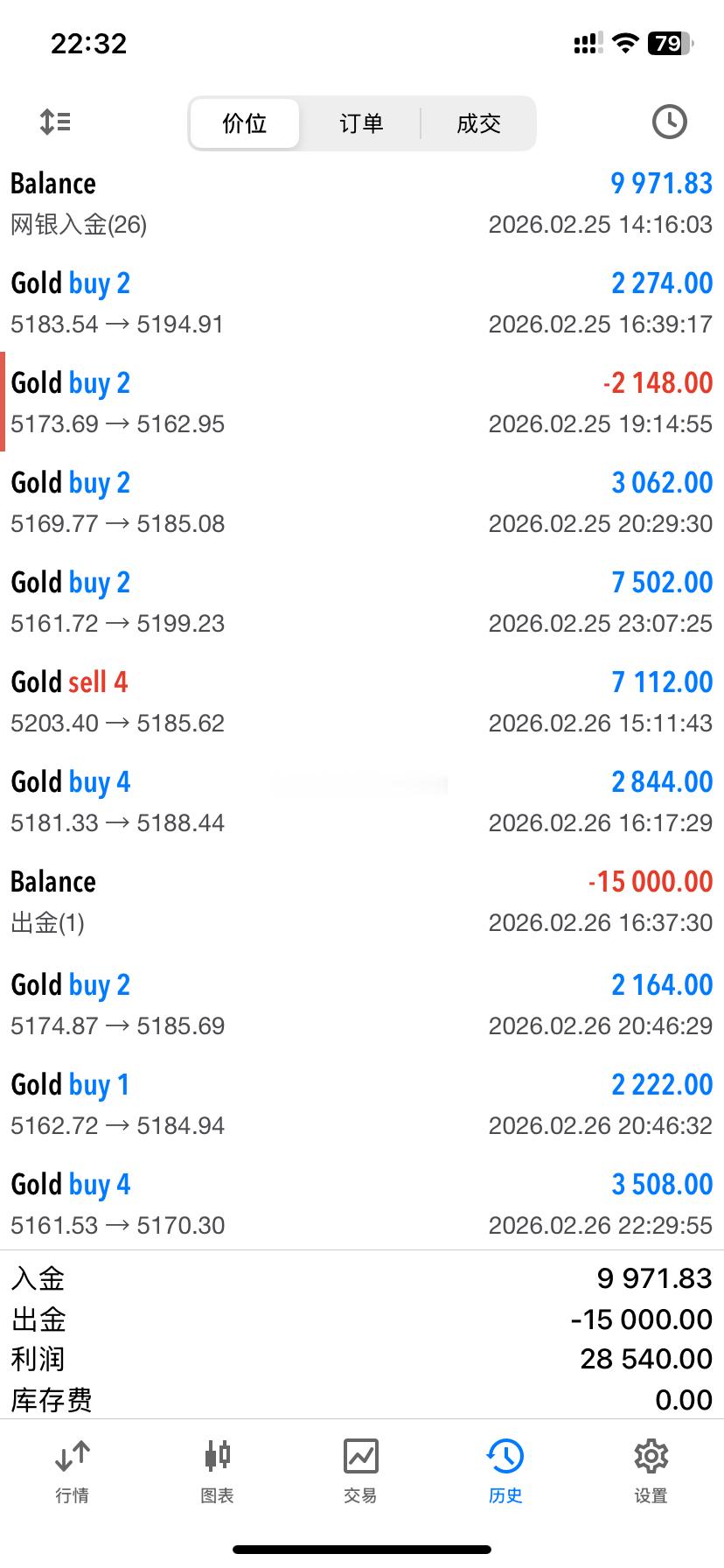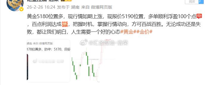 2026.2.26日操作4单,全胜!共收割840点利润。愿努力拼搏的人,目标会越来越近保持阳光、积极的心态,好运和正能量就在身边。今天操作到此收工,晚安!黄金 金价 晚安
