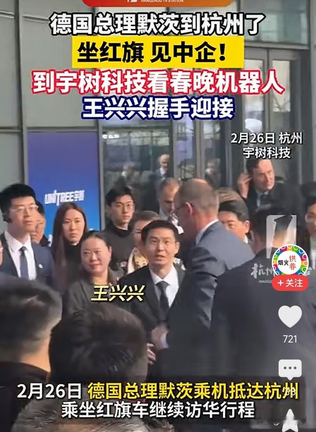 2月26号德国总理默茨到杭州宇树科技,德国总理这次来中国访问就是要看看中国春晚舞台上宇树科技的机器人,这些机器人能翻跟头,还能做高难度动作,这些都是给国际社会传递中国机器人走在世界的前列。 德国总理默茨到杭州坐红旗汽车,到宇树科技看春晚机器人,王兴兴与德国总理握手接待。 德国总理这次来中国访问也是带来了德国强大的企业财团来的,挑明了要与中国合作,带来了德国大众,西门子,宝马等德国企业界负责人来中国搞合作。 德国是欧洲国家中与中国经贸往来最多的国家,2025年中国和德国货物贸易额2510亿欧元,中国重新成为德国最大的贸易伙伴,中德两国经济贸易谁也离不开谁,两国经济互补很强。 德国汽车十分喜欢中国市场,德国大众从上世纪九十代初在中国市场发展,大众汽车把中国称期为第二本土市场,直到现在中国路上跑的很多大众汽车,中德之间合作,中国一汽大众,上汽大众,德国大众汽车在中国有很多汽车制造基地。 宝马和奔驰在中国也有很好的市场,所以中德之间经济合作是愉快的。