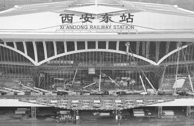 记者从中国铁路西安局集团有限公司了解到,特大型铁路综合交通枢纽西安东站春节期间持续施工,目前已完成总建设进度的90%。车站室内装修、配套设施安装等工作全速开展,轨道工程进入全面精调阶段,站场线路设备正进行集中整治,站场及动车所已启动静态验收,为后续建成开通、高质量投用运营奠定坚实基础。西安东站集高铁、普铁、地铁、公交等交通方式于一体,车站建筑总规模39.4万平方米。西安东站建成投用后,车站旅客年发送量预计达3650万人次,将极大缓解西安铁路枢纽客流压力。新华社记者邵瑞/摄