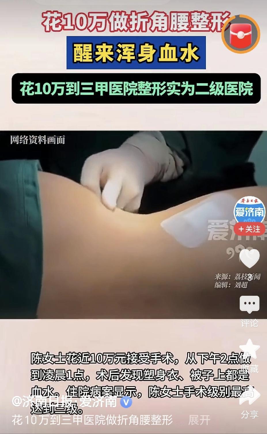 豪掷 10 万整容变“毁容”?假借南大名医头,南京女子术后满床血水,真相令人发指! (来源:荔枝新闻) 在这个“颜值即正义”的时代,为了追求完美身材,无数女性甘愿走上手术台。然而,当求美心切遇上精心包装的医疗骗局,等待她们的往往不是蜕变,而是无尽的噩梦。近日,南京陈女士的遭遇在网络上引发了轩然大波:她怀揣着对“折角腰”的憧憬,豪掷近 10 万元,结果却在所谓的“公立三甲”医院里,醒来面对满床血水的恐怖场景。这究竟是一场医疗事故,还是一场彻头彻尾的诈骗? 故事的起点,始于那个看似无害的社交平台——小红书。陈女士像往常一样浏览着种草笔记,被一篇篇关于“无痛、无创、即刻拥有漫画腰”的内容深深吸引。引流话术极具诱惑力:“无需开刀、不用拆线、恢复期极短”。更让她放下戒心的,是对方声称的手术地点:南京大学医学院附属南京国际医院。顶着“南大附属”和“公立三甲”这两块金光闪闪的招牌,陈女士坚信自己找到了权威保障,殊不知,这正是猎手为猎物精心布置的陷阱。 事实上,这家挂着响亮名头的医院,其真实身份却是“南京恒信医院”,一家民营医疗机构。从踏入医院大门的那一刻起,陈女士就陷入了一场精心设计的“身份错位”游戏中。医护人员言语间处处暗示其公立背景,利用信息差让患者误以为身处顶级公立体系之中。在这种心理暗示下,陈女士对即将进行的高风险手术丧失了应有的警惕,毫不犹豫地签署了协议,并支付了高达近 10 万元的手术费用。这笔钱,买来的不是美丽的承诺,而是身心的双重摧残。 手术当天,陈女士怀着忐忑又期待的心情躺上了手术台。医生信誓旦旦地保证“无创口、不出血”,让她在麻醉中安然入睡。然而,当麻药退去,意识逐渐回笼时,映入眼帘的景象却让陈女士瞬间坠入冰窟。她惊恐地发现,紧紧包裹身体的塑身衣已经被鲜血浸透,暗红色的血水甚至渗透出来,染红了身下的被子。那股浓烈的血腥味弥漫在空气中,与术前宣传的“无创无痕”形成了极其讽刺且残酷的对比。 所谓的“无创口”,实则是多处隐蔽却深刻的切口;所谓的“不用拆线”,是因为伤口还在不断渗血,根本未到拆线之时。陈女士在剧痛与恐惧中挣扎,质问医护人员为何情况如此糟糕,而对方的回答却含糊其辞,试图用“正常反应”来搪塞。那一刻,陈女士才恍然大悟:自己被骗了。这不仅是一次失败的手术,更是一场针对求美者信任的掠夺。 术后,陈女士的身体状况急转直下。剧烈的疼痛、持续的感染风险以及心理上的巨大创伤,让她原本美好的生活瞬间崩塌。那近 10 万元的手术费,如今看来更像是交给骗子的“买命钱”。她开始疯狂查阅资料,联系相关部门,终于揭开了这家医院的真面目:所谓的“南京大学医学院附属”,不过是玩弄文字游戏的营销噱头,其本质就是一家普通的民营医院,却披着公立三甲的外衣,行着过度医疗甚至欺诈之实。 这一事件曝光后,迅速点燃了公众的怒火。人们愤怒的不仅仅是陈女士个人的不幸,更是这种乱象背后的行业黑幕。在流量为王的今天,一些不良机构利用社交媒体精准引流,通过虚构资质、夸大效果、隐瞒风险等手段,将患者一步步诱导至手术台前。他们深知求美者的焦虑与渴望,于是编织出一个又一个完美的谎言,直到手术刀落下,谎言破碎,留下的只有患者破碎的身体和家庭的眼泪。 陈女士的遭遇并非孤例。在整形美容行业野蛮生长的当下,类似的“李鬼”医院层出不穷。它们善于伪装,善于利用名校、公立医院的声誉背书,实则医疗水平参差不齐,甚至毫无资质可言。对于普通消费者而言,辨别真伪的难度极大,一旦中招,维权之路更是漫漫无期。 此事也给所有爱美人士敲响了警钟:医美有风险,选择需谨慎。切勿轻信网络上的“种草”文案,更不要盲目迷信所谓的“名牌附属”。在选择医疗机构时,务必通过官方渠道核实其资质,确认医生执业资格,看清合同条款,不要被华丽的宣传语冲昏头脑。美丽固然重要,但生命健康才是底线。 目前,陈女士正在积极维权,要求医院退还费用并赔偿损失。我们期待相关部门能介入调查,彻查这家医院的违规操作,给受害者一个公道,也给混乱的医美市场一次彻底的清洗。愿每一个追求美的灵魂,都不再被黑暗吞噬;愿每一张手术台,都能真正承载希望而非绝望。这场由"10 万块血水”引发的风波,不应就这样无声无息地过去,它必须成为推动行业规范化的里程碑。南京整容医院 南京整容女