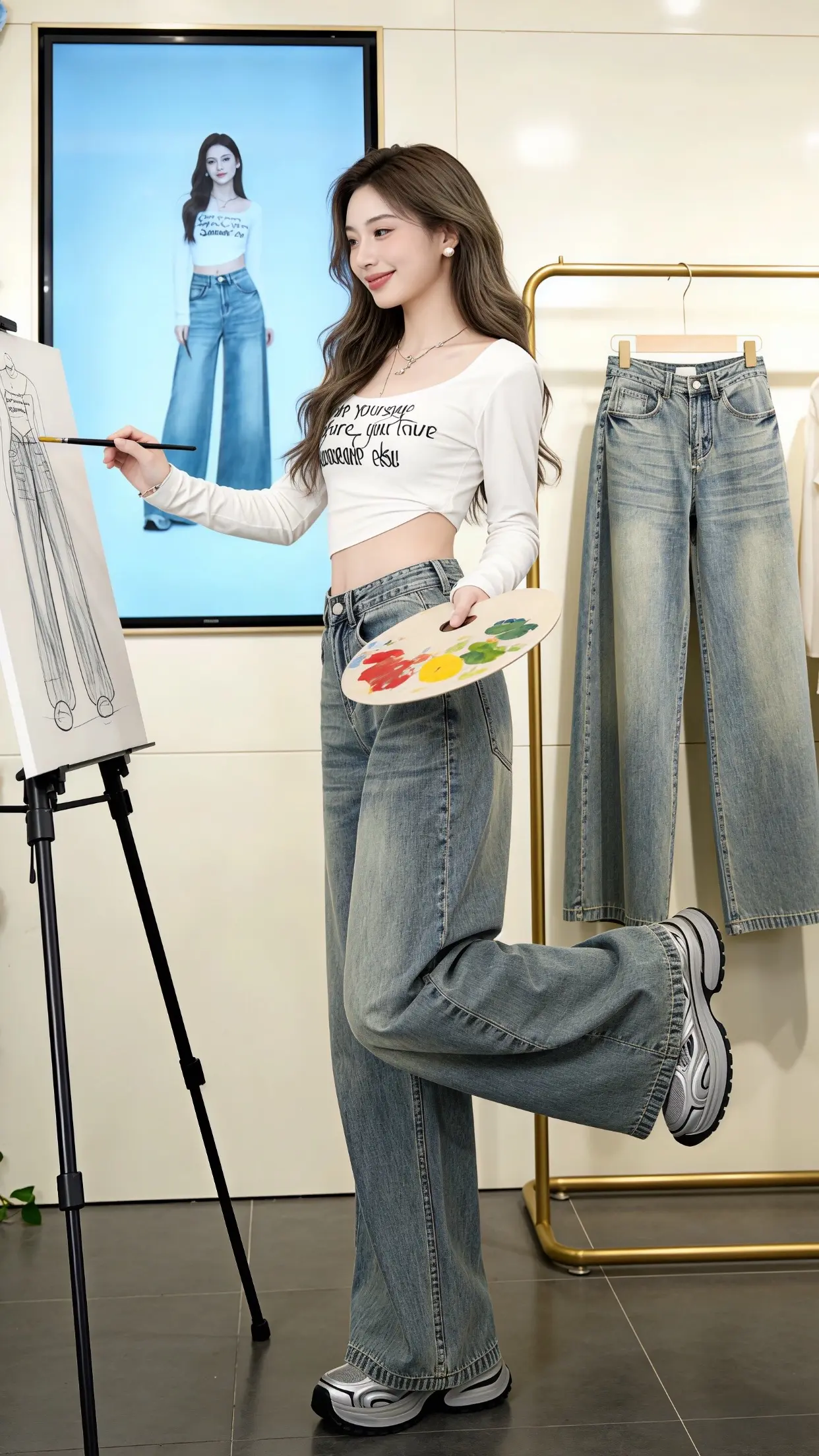 一眼就爱上的神裤 做旧牛仔阔腿裤高腰 穿出自己的风格 早春穿搭 谁穿谁好看