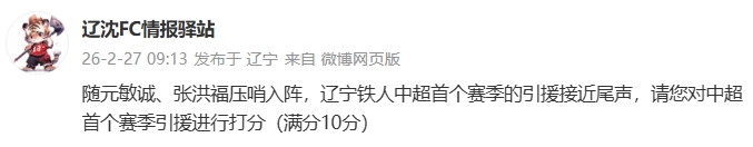随元敏诚、张洪福压哨入阵,辽宁铁人中超首个赛季的引援接近尾声