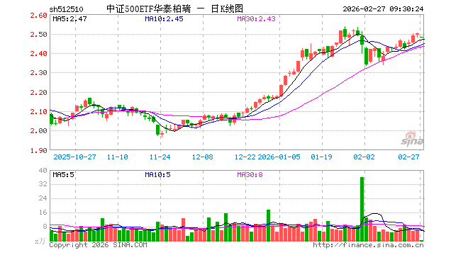 2月27日,中证500ETF华泰柏瑞(512510)开盘跌0.60%,报2.483元。中证500ETF华泰柏瑞(512510)重仓股方面,英维克开盘跌4.12%,信维通信跌0.49%,巨人网络涨0.43%,中国卫星跌0.13%,航天电子涨0.00%,中矿资源跌0.50%,先导智能跌0.69%,卧龙电驱跌0.34%,赤峰黄金跌0.39%,兴业银锡跌1.04%。