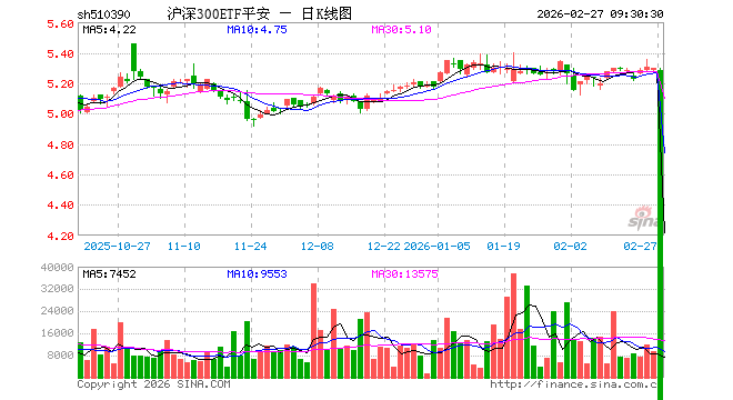 2月27日,沪深300ETF平安(510390)开盘跌0.32%,报5.280元。沪深300ETF平安(510390)重仓股方面,宁德时代开盘涨0.32%,贵州茅台涨0.05%,中国平安涨0.16%,中际旭创跌3.01%,紫金矿业跌0.43%,招商银行涨0.13%,新易盛跌3.86%,美的集团跌0.28%,兴业银行跌0.05%,长江电力涨0.04%。