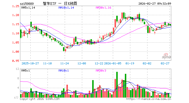 2月27日,智能汽车ETF(159889)开盘涨0.44%,报1.150元。智能汽车ETF(159889)重仓股方面,拓普集团开盘跌0.39%,豪威集团跌1.31%,科大讯飞跌0.38%,比亚迪跌0.50%,长安汽车跌0.18%,赛力斯跌0.08%,芯原股份跌1.80%,立讯精密跌1.00%,北京君正跌2.17%,德赛西威跌0.39%。