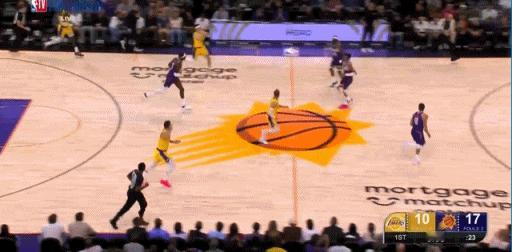 湖人打出12比0的反击,杰伦-格林立功了。湖人vs太阳