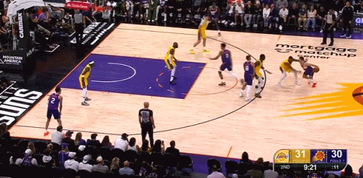 太阳队球传导能力比湖人好啊,吉莱斯皮和阿伦一顿投射,打停了湖人队。湖人vs太阳