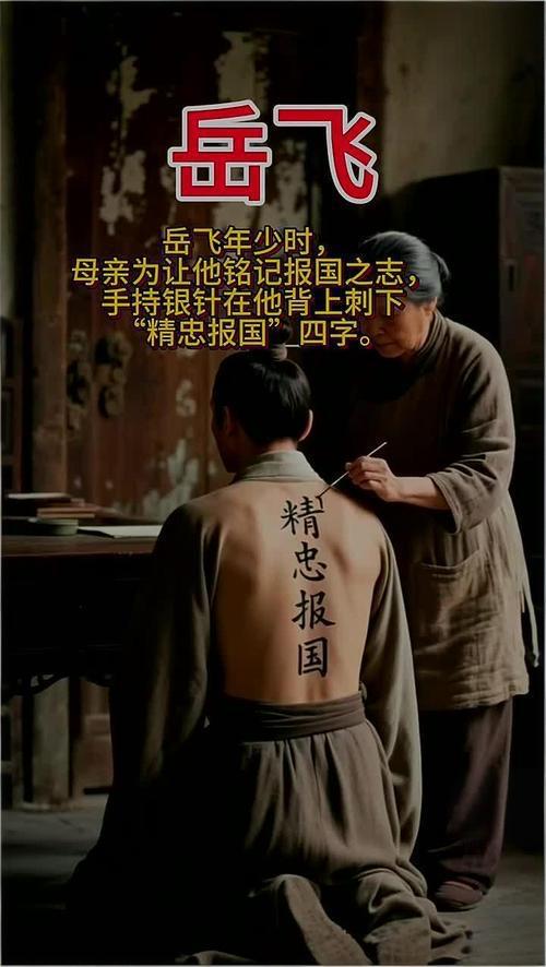 从岳母刺字,读懂中国人刻进骨血的“家国情” 《岳母刺字》是南宋抗金名将岳飞传奇人生中的感人一幕。岳飞的母亲姚太夫人为了激励儿子立志报国,在岳飞背上亲手刺下“尽忠报国”四个大字。这不仅是一道深刻的印记,更是家国情怀和忠义精神的生动象征。那四个字,沉甸甸地承载着母亲的殷切期望,也成为岳飞一生矢志不渝的信念。 在那个风雨飘摇的时代,国家危难,家国情怀被赋予了极高的价值。姚太夫人以最朴实却最坚定的方式,激发了岳飞的忠诚与担当。她用血与针刻下的誓言,成为岳飞抗击金兵、保家卫国的强大动力。岳飞“精忠报国”的精神,也因此代代传颂,成为中华民族忠义文化的经典象征。 “尽忠报国”不仅是一句口号,更是一种信念,一种责任。它激励着无数志士仁人奋勇前行,守护家园,捍卫正义。岳母刺字的故事,彰显了母爱的伟大与家国情怀的深厚,激励着后人铭记忠诚与担当,传承中华民族不屈不挠的精神力量。满江红·岳飞 硬汉岳飞 岳飞传记 岳飞之死 满江红情之深 浙江岳飞墓 母剌精忠报国 岳飞母亲姚夫人 历史冷知识 历史故事 历史