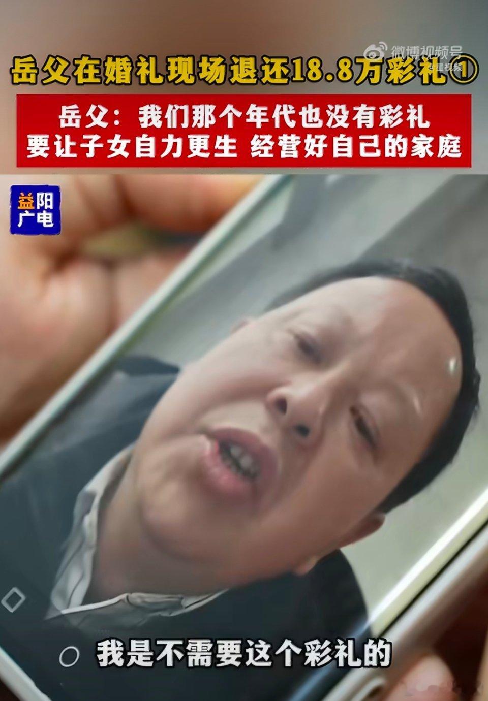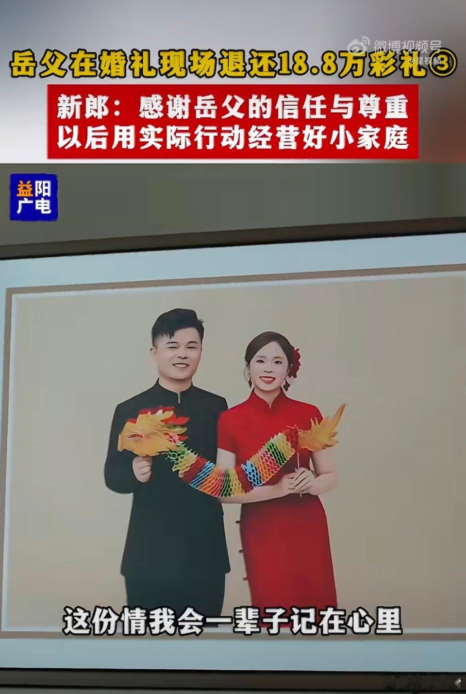 父亲退还18.8万彩礼新娘发声湖南这位岳父退还18.8万彩礼的举动,戳中了无数国人的内心!这哪是退彩礼,分明是给当下有些变味的婚恋风气一记清醒剂。彩礼本是“礼”,承载的是祝福与尊重,可如今不少地方把它当成了攀比的筹码、变相的索取,让多少年轻人被高价彩礼压得喘不过气,让多少姻缘卡在了彩礼上。
