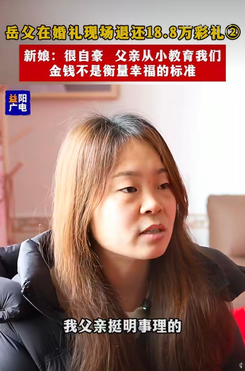 他退回去的是经济负担,递出去的是信任与格局,这样的父母才是孩子幸福最坚实的后盾。说到底,我们要的从来不是天价彩礼的“面子”,而是不被彩礼绑架的“里子”。这样的正能量就该多传播,若每个家庭都能少点算计、多点体谅,婚恋市场才能更纯粹,年轻人才能更从容地奔赴爱情。滚滚锐评父亲退还18.8万彩礼新娘发声