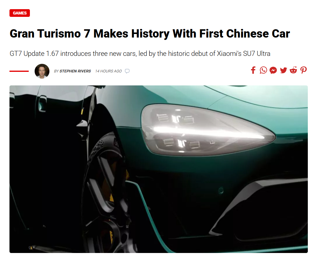 而且我翻开评论一看基本上都是在夸,确实在一个海外游戏里开国产车那种感觉挺戳人的。最近我还看了懂车帝上线的小米法拉利保时捷大战纽北,那个片真的推荐大家去看看,感觉不输飞驰人生。而且大战的都是纽北顶级赛车了,小米这车才卖多少钱?跟保时捷法拉利在纽北同场竞技,用的还是原厂素车。这就好比一个刚毕业的小伙跟行业泰斗同台答辩,还完全不落下风。不管最后圈速多少,能让这帮老外重塑“中国车只会堆料”的世界观,小米这一仗,赢得挺漂亮