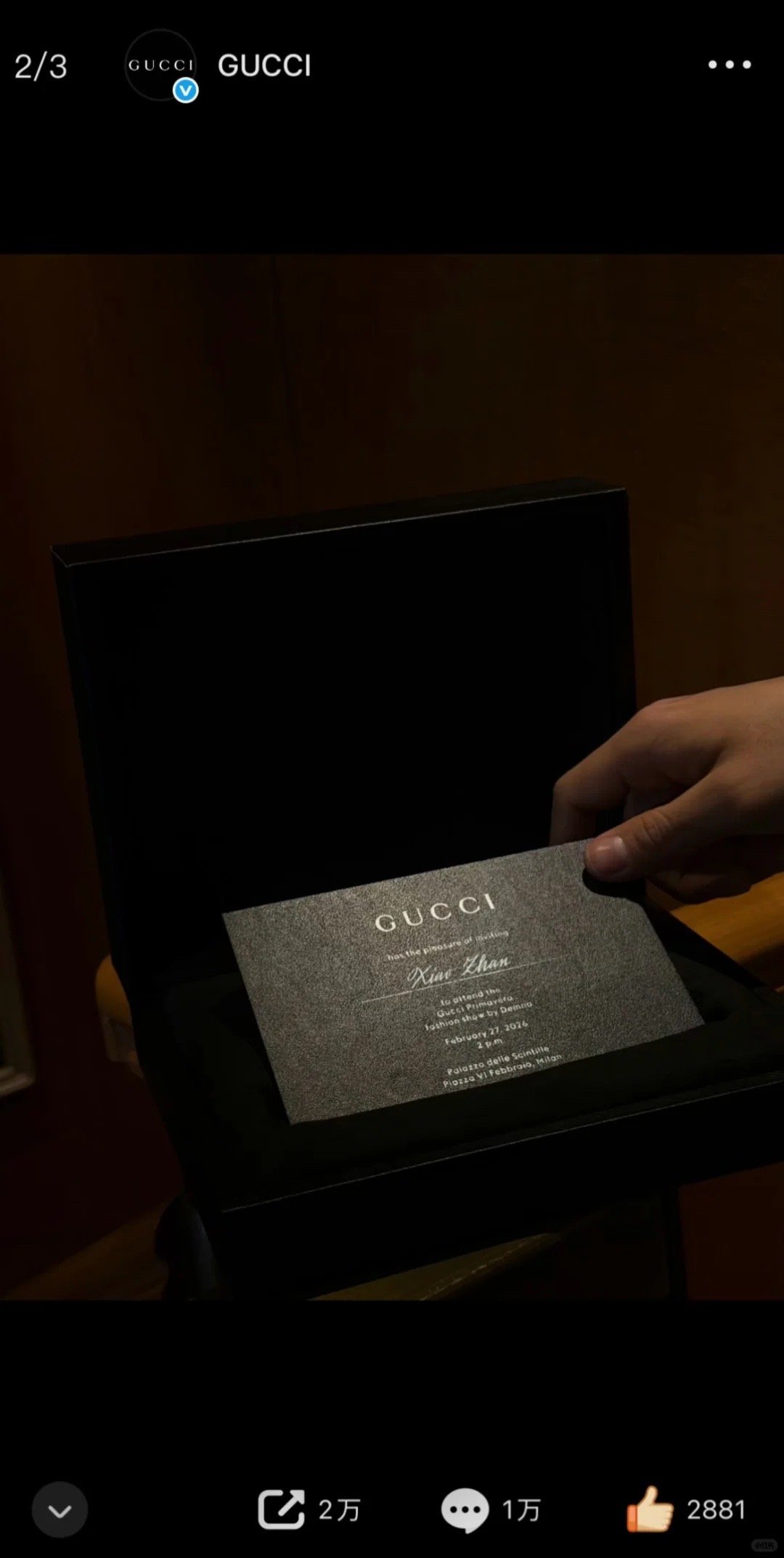 顶奢待遇的真神来了Gucci晒肖战邀请函