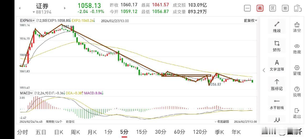 聊聊证券板块(2026.2.27) 今天证券板块维持了一个小幅震荡走势,目前在操