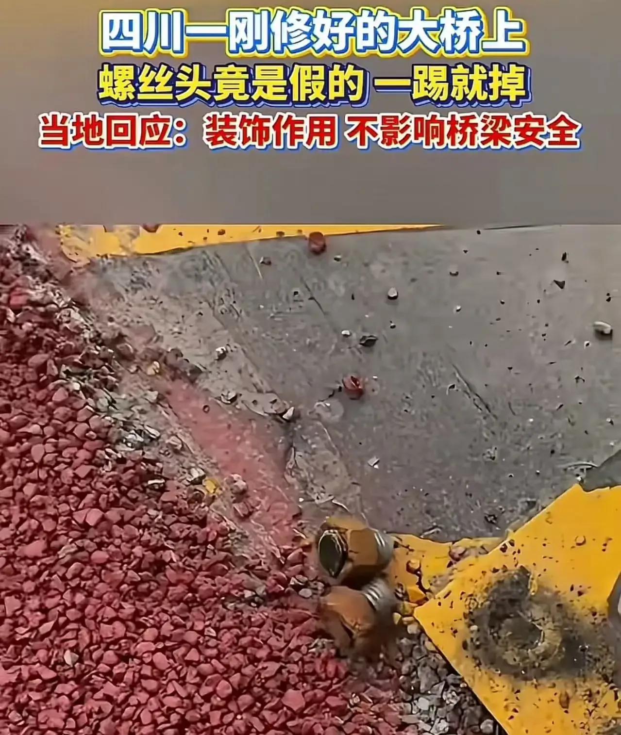 四川一刚修好的大桥上,竟然出现了让人瞠目结舌的一幕:螺丝头竟然是假的,轻轻一踢就掉了!这究竟是怎么回事?难道桥梁建设也玩起了“装饰艺术”? 近日,有网友爆料称,在四川某地一座刚修好的大桥上,发现许多螺丝头都是假的,轻轻一踢就掉了下来。这一发现立即引发了网友们的热议,大家纷纷表示无法理解,为何要在桥梁上使用假螺丝进行装饰。对此,当地相关部门回应称,这些假螺丝只是为了起到装饰作用,并不影响桥梁的整体安全。然而,这样的解释并未能平息网友们的质疑。有网友表示,桥梁建设关乎公共安全,岂能儿戏?弄虚作假只会损害公众利益。还有网友调侃道,这难道是桥梁设计师的“独特审美”?不过,也有网友认为,或许这些假螺丝背后有着其他不为人知的原因,比如节省成本等。但无论如何,桥梁安全无小事,任何细节都容不得半点马虎。 四川大桥上的假螺丝事件,无疑给我们敲响了警钟。桥梁建设关乎每个人的生命安全,容不得半点弄虚作假。对于此事,你怎么看?快来评论区发表你的看法吧!螺丝品质 桥梁螺丝 十字异形头螺丝