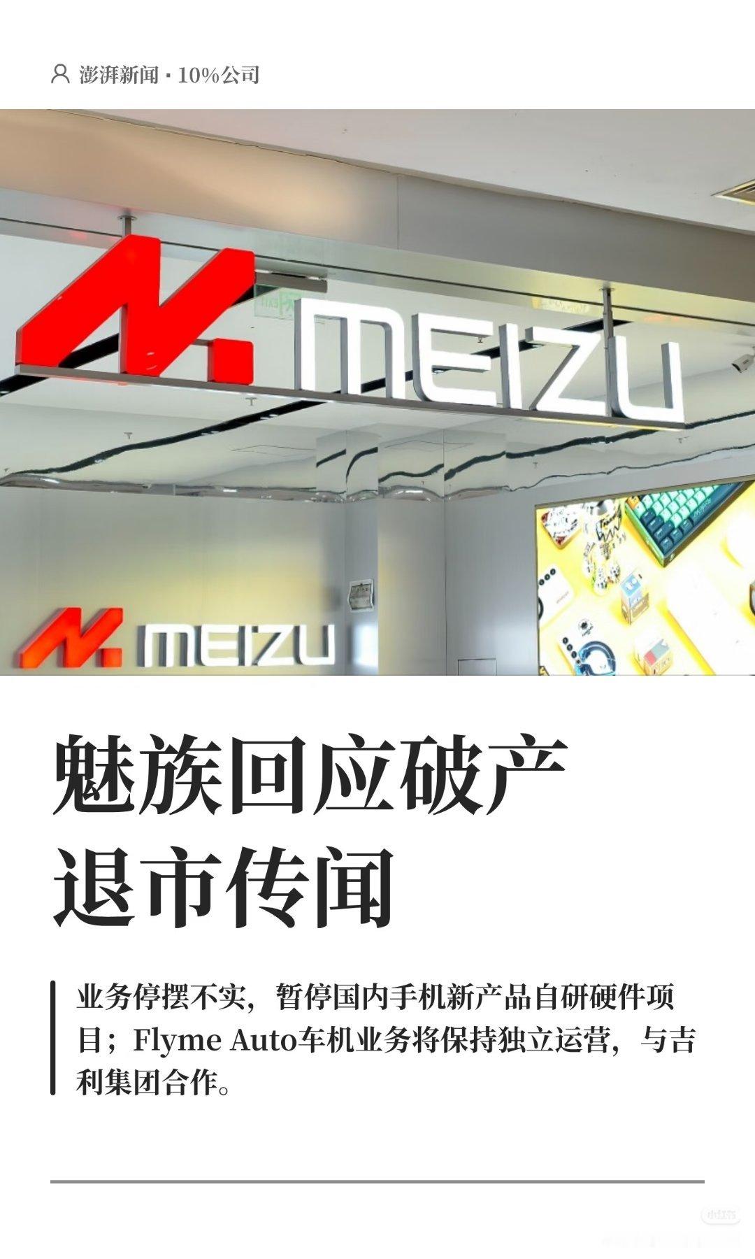 魅族公告魅族将暂停国内手机新产品自研硬件项目,并在积极接洽第三方硬件合作伙伴,同