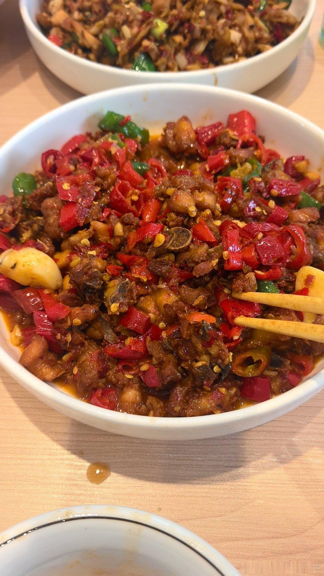 第三道辣子鸡,终究是吃上了,进了江西省,就跃跃欲试,媳妇怕辣,但是要离开江西了,毕竟一路辣过来,可以接受,不柴,好吃,对于吃饭的礼仪家教很严,但是在江西吃饭,不得不扒拉着吃,辣椒太多,我想这不算偷工减料吧,因为我每次都是微辣,现在特别想尝尝正常是什么味的,还能怎么辣