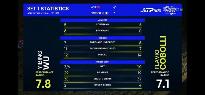 其实从performance rating上吴易昺是7.8压过对手7.1的,但破发机会未能把握,加上几个关键球失误尤其是网前,给了对手还魂的机会。