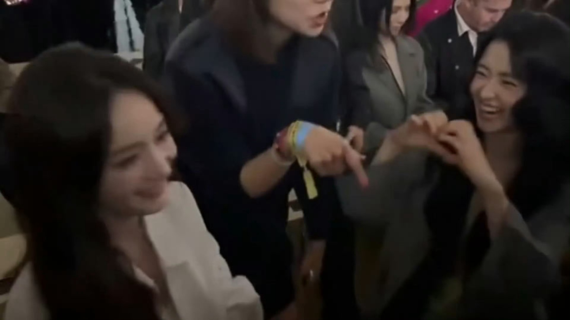 金泰梨对杨幂比心 两个人都很美很萌,看着心里软软的,非常养眼!我也想对着杨幂比心
