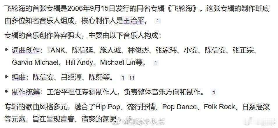 飞轮海专辑制作班底有多夯 《寂寞暴走》的制作人是黄晟峰,《至少还有我》有陈信延参与,《爱到》出自TANK之手。飞轮海的专辑就是一部华语乐坛创作力量的编年史,每一首歌都有故事可讲。