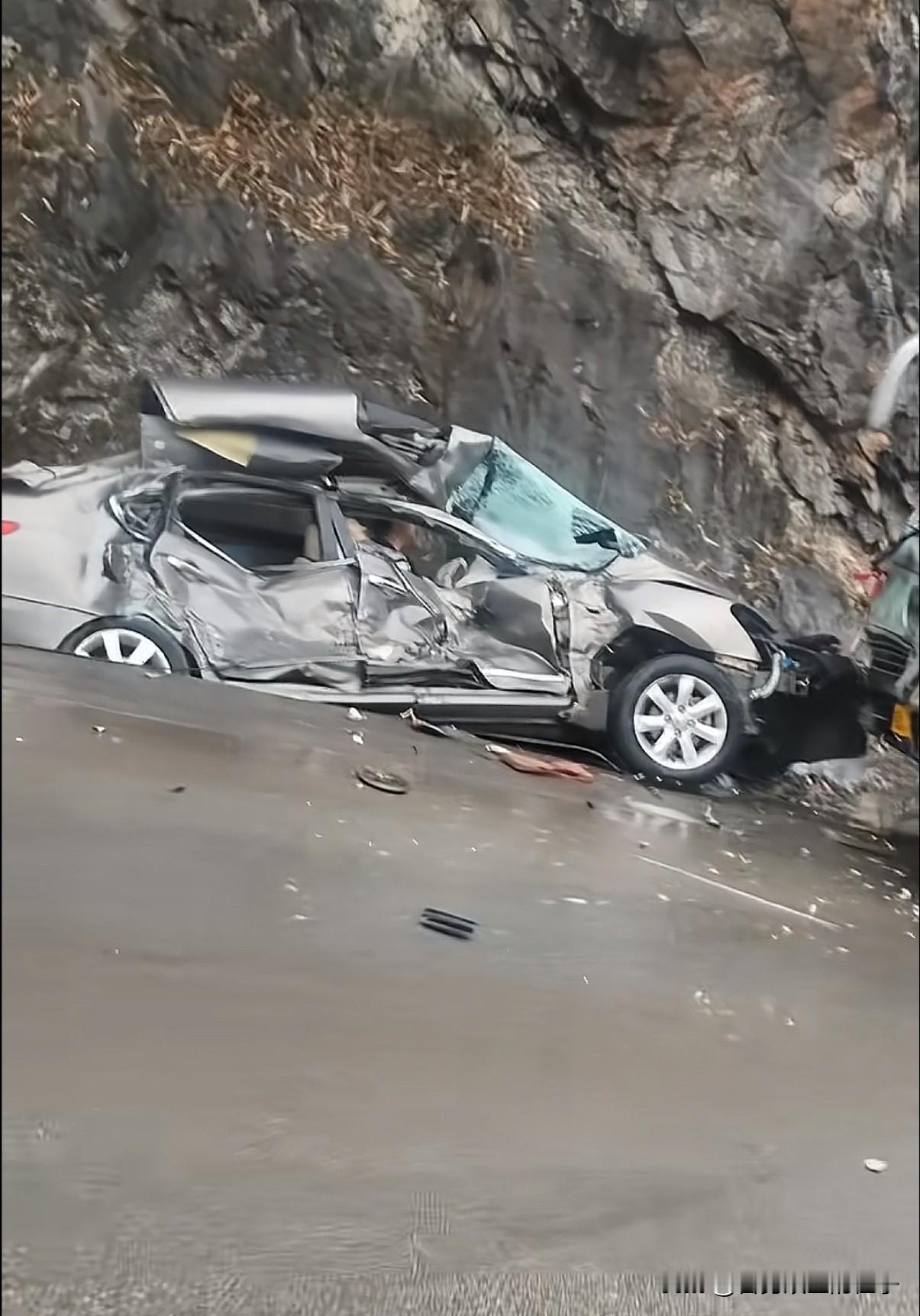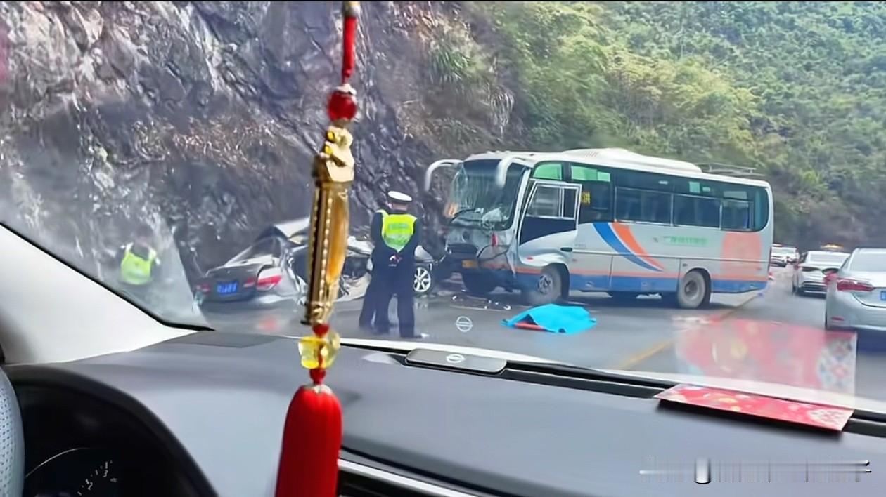 广西百色市发生一起惨烈车祸,副驾驶被抬出盖上蓝布,现场画面流出! 2月26日,百色市那坡至坡洪路段,一辆日产轩逸疑似因雨天路滑失控,侧滑撞上正常行驶的大巴车, 根据大巴车的行车记录仪显示,撞上时,大巴车的速度只有37码左右,并不快! 但从现场画面可以看到,轩逸右侧的两个车门已经严重变形,一时难以打开,左侧又贴近山体,导致司机和副驾驶只能在车里等待救援。 有路过的网友拍下视频,副驾驶被抬出时已经盖上了蓝布,37码都能撞成这样,真让人后怕。 当地网友说,这段路是出了名的盘山公路,弯道多、视线差,雨天路滑一定要开慢一点!