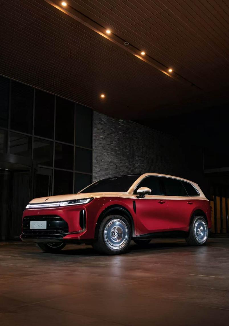 华境S炽焰鎏金色实拍图来了,红色+金色双拼,再配上个大饼毂,豪华的小调调起来了。来个新车回顾,五菱和华为合作开发的6座SUV,长5米2,轴距3米1,鸿蒙全家桶,1.5T插混,31度和41.9度两种电池组,上半年上市。【来自懂车帝车友圈】