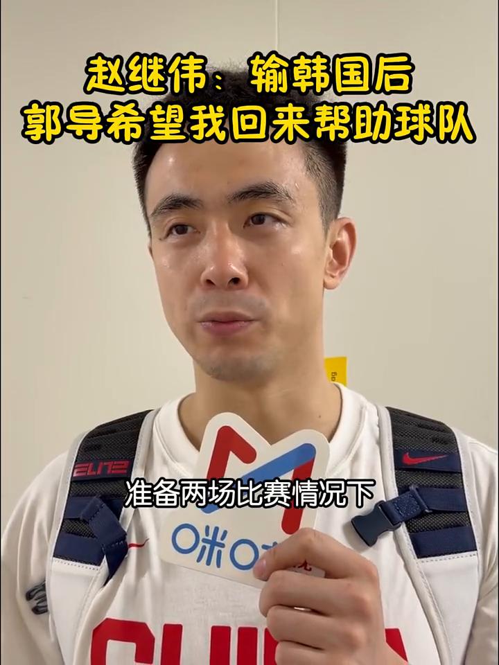赵继伟:输韩国后郭导希望我回来帮助球队。 其实那是两场比赛,我在家里都看电视也都看了,也看出球队的一些问题。我觉得大家也在复盘这两场比赛,特别是心态上,特别是全运会结束以后大家很疲劳。我觉得在准备两场比赛情况下,斗志或者是精神状态可能跟对方达不到一个节奏上,所以我觉得这个原因很大。 另外一个我觉得还是在组织进攻上有点混乱,我觉得这个是球队几个问题。郭导也跟我聊了希望回来帮助球队哪些问题,在进攻梳理上,包括传导球上,稳定节奏上可能要下点功夫。