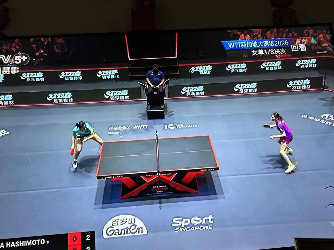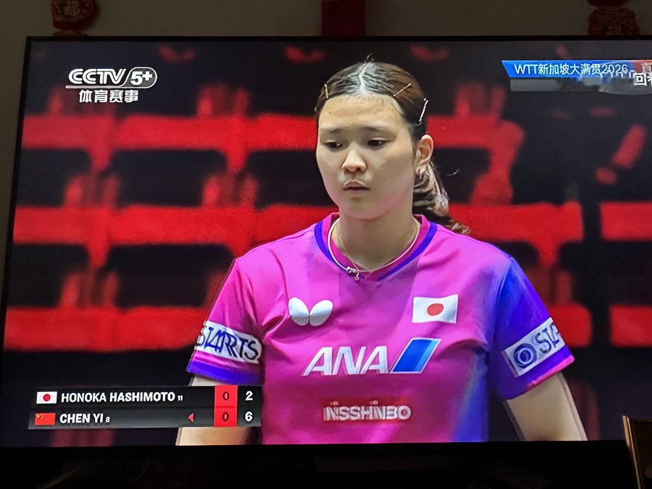 没想到吧? 首胜!刚刚结束的一场2026年WTT新加坡大满贯女单八分之一决赛的赛场,中国队的陈熠对阵日本队的桥本帆奶香,陈熠竟然以三比零的大比分横扫对手胜出了! 以往的国际大赛中,陈熠与日本队的削球手桥本帆奶香总会在赛场上狭路相逢,陈熠也总是输给桥本帆奶香,这次,他们又相遇了,本来都没对陈熠打赢这场比赛抱多大希望,没曾想,陈熠却以三比零的大比分赢下了这场比赛胜利晋级,太厉害了! 这样,中国女单在这一次的新加坡大满贯赛中获取奖牌又多了一份希望,同时,对于孙颖莎和王蔓昱来说,争夺世界冠军又多了一个强有力的对手。