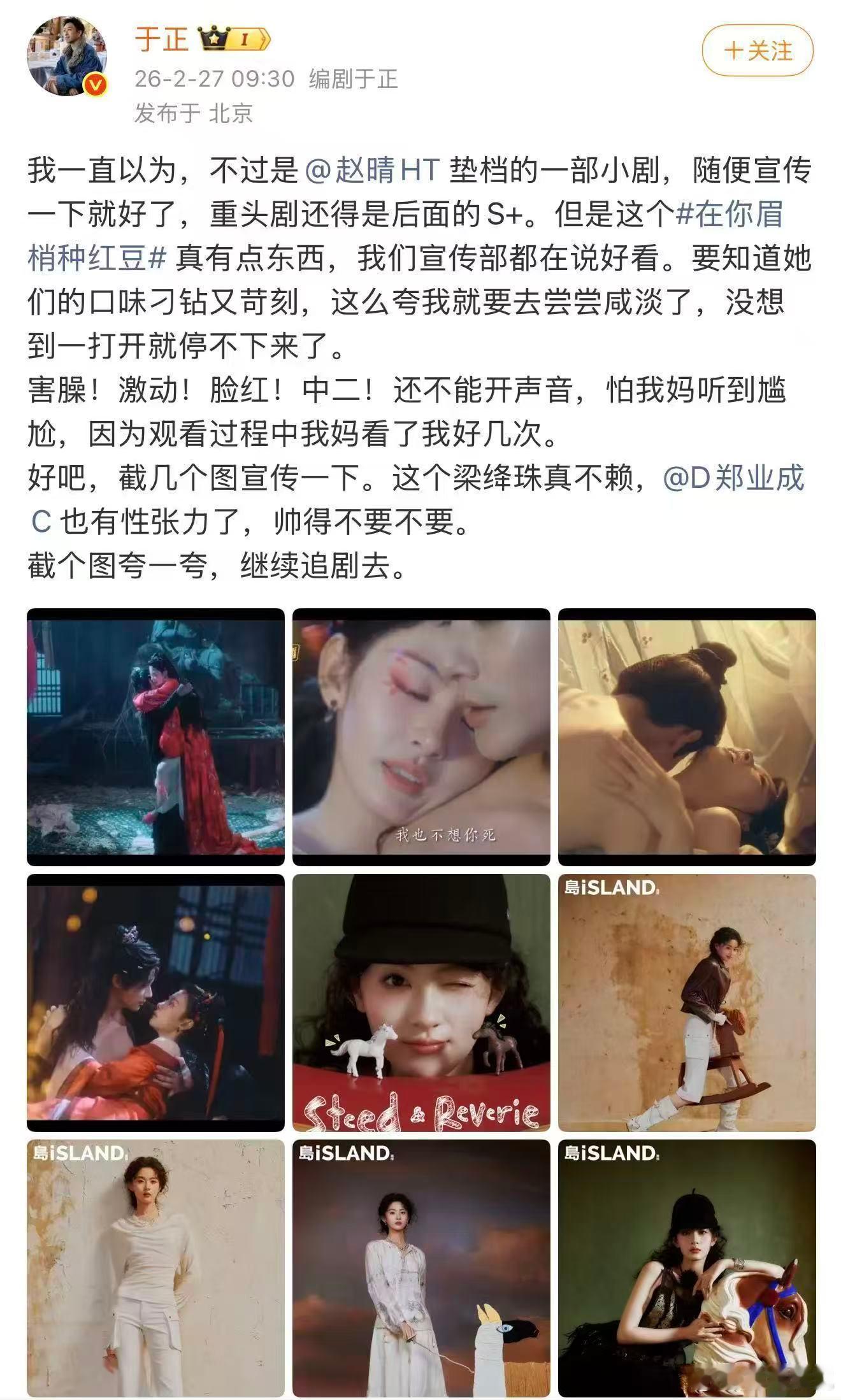 不知道观众想看什么所以导演全拍了 《在你眉梢种红豆》的配置堪称“追剧营养餐天花板”。主菜是哨向宿敌的极致拉扯,配菜是病娇美学的禁忌之恋,甜点是权臣萌娃的意外好嗑,餐后还有全女打戏燃到爆。这一顿,吃得又饱又好!
