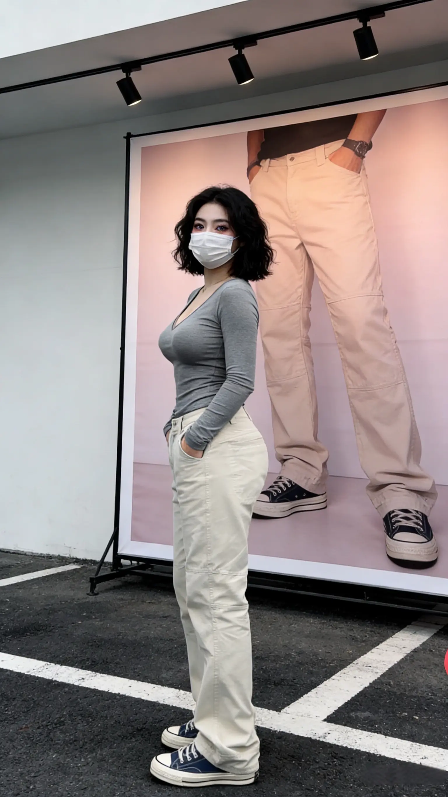 弯刀立裁拼接工装裤四季机能风可调节直筒裤简约透气休闲长裤