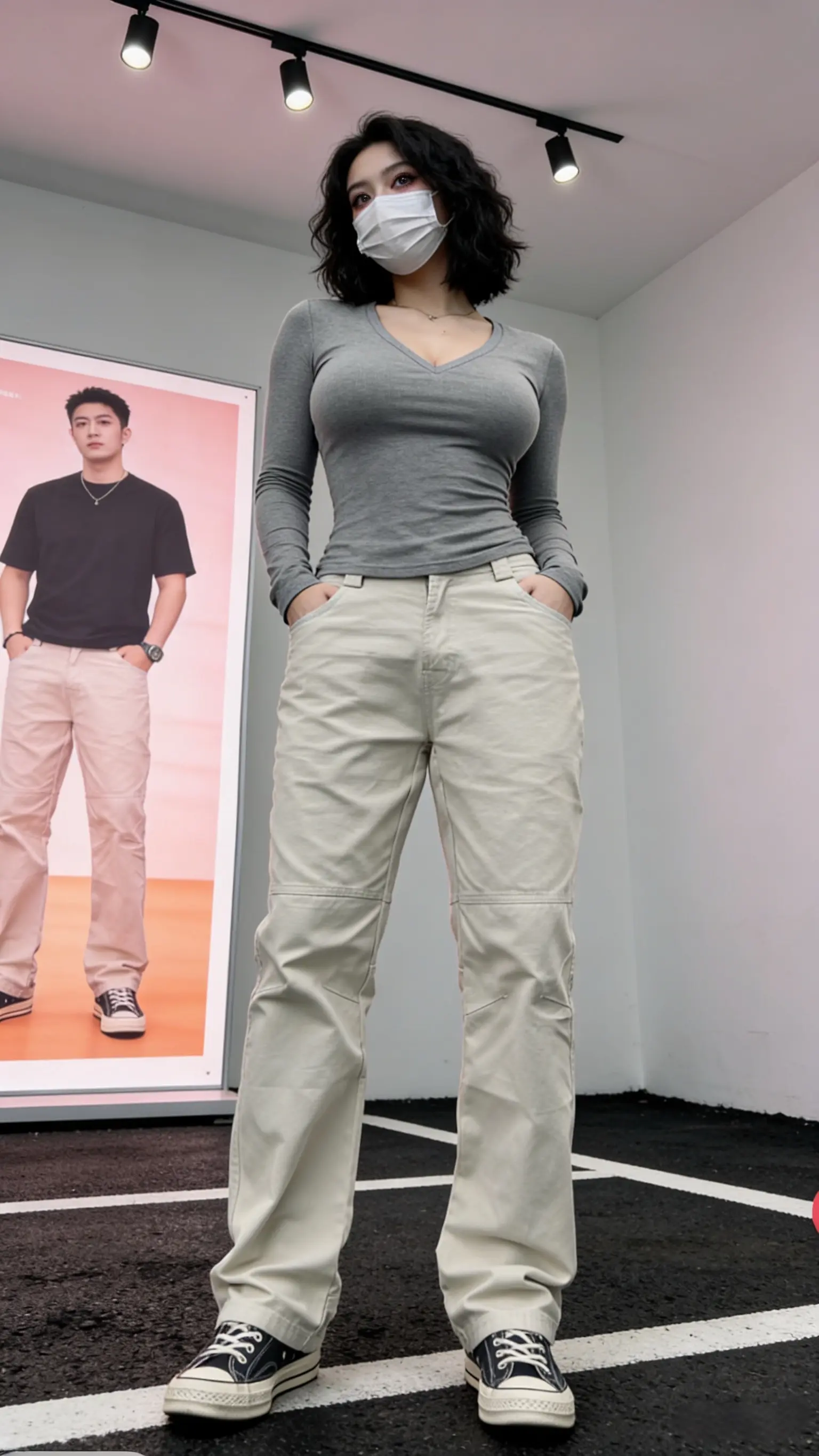 弯刀立裁拼接工装裤四季机能风可调节直筒裤简约透气休闲长裤