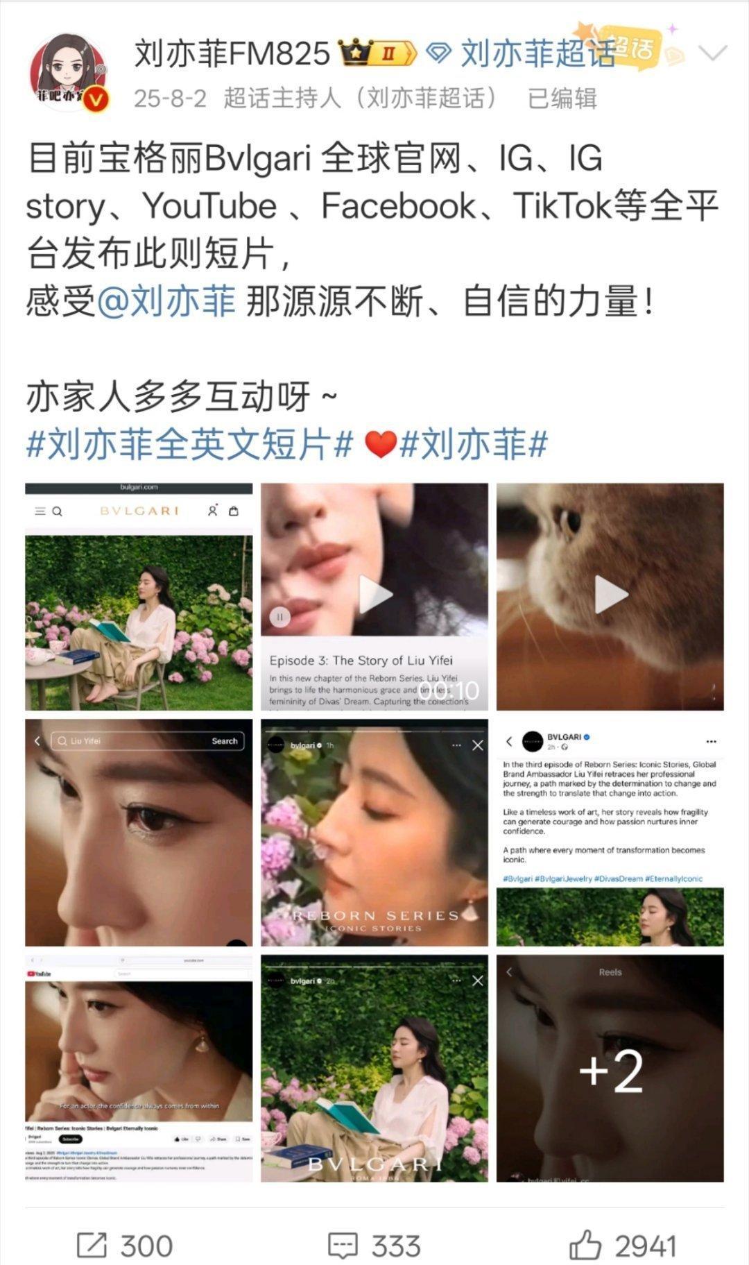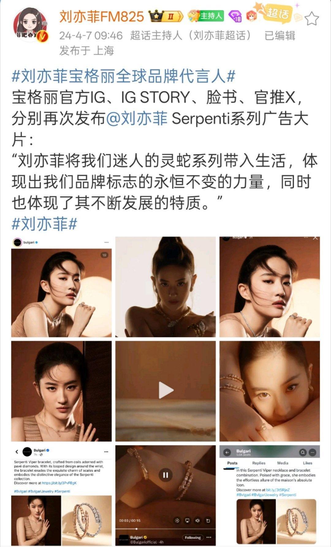 被宝格丽全球认领已经是家常便饭,拍广告,短片,习惯了!这个待遇内娱至今只有刘亦菲一人
