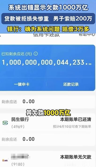 “憋住,别笑!”广东中山,一男子在银行办了10万的准贷记卡,没有逾过期,APP却显示他欠款1000万亿,可把男子吓得不轻,他赶紧找银行,原来是系统出错,可磨叽1年多才给他消除,这期间,他因为信用有污点,贷款被拒,只能忍痛贱卖了700万左右的货,损失惨重,男子一怒之下,跟银行索赔200万,银行承认有错,但只赔3万多,男子怒了,这是打发叫花子吗?网友:负可敌国了!这是从天地银行贷的款吧? 去年年初,李先生遇到了一个大单:来自东南亚的一笔订单对方急需货物供应,只要能垫付一点资金,就能一次性回款高达百来万。 眼见机会难得,他准备申请一笔贷款补充资金周转。可是到各大银行、贷款APP递件的时候,却连连被拒。 一开始他以为只是资料不全、征信分不高、还款计划没说清楚;可他兴致勃勃地跑了好几家,却一再碰壁。 更奇怪的是,当他打开某信用管理APP时,赫然显示他是“严重逾期欠款用户”,欠款金额竟然高达 “1000万亿” —— 不是百万、不是亿,而是 万亿。 李先生楞了好几秒,心都提到嗓子眼:“这不可能!我从来没借过这么一笔钱!更没有逾期!”他赶紧截图、打印出来,连夜跑到银行柜台。 银行柜员看了他的截图也愣了一下:“这……确实是系统里的信用记录异常。我们这边显示你存在一笔巨额逾期账单,是系统错误导致的。具体原因我们需要内部核查……” “核查多久?”李先生紧张又愤怒,“我现在贷款被拒,货款都谈不好了,这损失谁来承担?” 柜员低声说:“一般要走流程,这种情况修正最快也要几周。” 几周到了,还是没修正。一个月、两个月……银行每次回复都是“专业核查组还在处理中,请耐心等待”。 半年过去,李先生的生活开始被这种异常信用记录击得乱七八糟:贷款、融资、供应链合作,全都碰壁。 更糟糕的是,因为资金链断了,他原来准备出货的700多万存货被迫降价出售,提前清仓还债,亏得血本无归。眼看人家同行还在做大单,他却连基本运营都支撑不住。 这一年多来,他基本每天往返于银行分行、信贷中心、信用中心投诉渠道;打电话、发邮件、发短信;甚至跑到监管部门去投诉。 每次结果都是“已经反馈,处理中,请耐心等待”。但问题一直没有被及时纠正。 终于,事情在某天迎来转机。一次偶然机会,李先生在等待办理业务时遇到一位熟悉征信系统的朋友。 那人随口帮他查了一下内部征信报告,结果发现银行系统里真的存在一条 荒诞的巨额逾期记录 —— 账单编号、金额、账龄全无逻辑,显然是 系统数据错误导致的乱码式“债务”。 这位朋友说,这种错误其实不是没有先例,但绝对不能出现,而且应该在接到第一反馈时尽快更正,而不是拖一年多。 李先生拿着这份说明,再次找到银行负责人。这次银行也终于不得不正视问题,经过内部深查确认错误属于 系统数据库异常写入、风控算法误判。 银行才正式向征信机构提交了修改申请,才把那条“万亿级欠款”记录从信用报告里删掉。 消息一出,李先生松了一口气,但他这一年损失已经无法挽回。作为一个普通人,他失去了信任、失去了机会,还背负着巨大的心理压力。 愤怒之下,他聘请律师向银行提起赔偿要求,索赔数额 200万元 —— 他认为因为银行系统错误,导致他业务受阻、货物亏损、信誉受损,这些损失银行应当承担。 银行在专业律师沟通后承认错误,并提出赔偿方案:一次性赔付李先生 3万多元 作为善意补偿。银行解释这是按内部标准赔偿,但绝大多数损失无法因此覆盖。 李先生听完彻底愤怒了:“这是什么赔偿标准?3万多?你这是打发叫花子吗?!我买不起这个赔偿!这当年的损失都不够损失的零头!” 他主动联系媒体曝光,舆论一下子爆开了。相关报道在网上被转载、评论。 网友们看完也气愤不已: 有网友说:“这欠款数额比国家财政预算还大吧?这是什么系统?搞笑吗?” 有人调侃:“这一定是从天地银行贷的款吧?” 也有理性的评论指出:“银行系统这么大出错一年还没修正,这银行的风控和数据管理也太拉胯了。普通人信用一旦损坏恢复起来太难。” 还有人说:“这种赔偿太不公平了,银行造成的损失远不止3万,李先生有权争取合理补偿。”