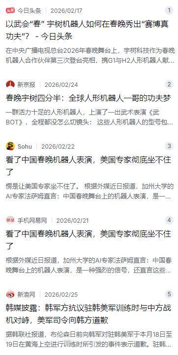 据印尼媒体报道,美国加州大学人工智能专家法萨姆认为:从中国春晚机器人的表现看,这些机器人可以成熟的应用到军事领域。在中美印太战略博弈加剧的背景下,加上美国和伊朗矛盾上升之际,他认为:这是北京给华盛顿发出了一个强烈的信号。   麻烦看官老爷们右上角点击一下“关注”,方便您进行讨论和分享,感谢您的支持!   2026年的马年春晚,杭州宇树科技的H2人形机器人带着二十多个“兄弟”在《武BOT》节目里秀了一把真功夫。这帮机器人不仅能后空翻、耍双节棍、打醉拳,还能在奔跑中快速变阵、高精度协同,全程零碰撞。说是表演,其实懂行的人一眼就能看出来——这是全球第一次全自主人形机器人集群武术表演,技术底子厚不厚,全在动作里了 。   节目是挺热闹,但有人看得心里不是滋味。美国加州大学的一位人工智能专家法萨姆跳了出来,说这哪是文艺演出,分明是“强烈信号”。他解读说,这些机器人表现这么成熟,随时可以拉到战场上用,尤其是现在中美在印太较劲、美国和伊朗又闹得凶,北京这就是在给华盛顿递话呢。   这话听起来是不是有点耳熟?但凡中国搞出点新科技,西方总有人习惯性地往军事上扯。可话说回来,咱们得捋捋时间线。就在春晚前几天,驻韩美军可没闲着。十多架F-16战机从乌山基地起飞,直奔黄海空域搞训练,一度逼近中国的防空识别区。解放军自然得“全程跟监警戒”,结果双方在空中照了面,形成了对峙 。这事儿连韩国军方都急了,直接打电话给驻韩美军司令抗议,嫌他没提前通气、惹麻烦。美军司令后来不得不道歉,虽然嘴上硬,但训练确实提前叫停了 。   这一来一回,谁在秀肌肉、谁在制造紧张,明眼人看得清清楚楚。美国的专家不去反思自家军机跑到别人家门口“打卡”,反倒盯着中国的机器人节目上纲上线,这双标玩得确实溜。   更有意思的是后续。春晚刚结束没几天,美国国防部动作麻利得很,2月14号那天,直接更新了一份“中国军事企业清单”,宇树科技的大名赫然在列 。一起上榜的还有阿里、百度、比亚迪这些大家耳熟能详的名字。说是“军事企业”,可宇树干的事儿跟军工压根不搭边,人家主打的是四足机器人和人形机器人,卖到全球各地做电力巡检、消防应急,还有高校搞科研 。美国这一手,说白了就是“打不过就拉黑”——技术上追不上了,就用行政手段掐供应链、吓唬投资者,想把中国的新兴产业摁在摇篮里。   其实美国专家那套“军事解读”,多少有点心虚。摩根士丹利的报告摆在那儿,过去五年中国注册了7700多项人形机器人专利,是美国的五倍还多 。宇树科技2025年光是纯人形机器人就出货了5500多台,全球销量第一,四足机器人更是占了全球六七成的份额 。更关键的是,宇树整机国产化率超过90%,成本能压到同类产品的五分之一甚至更低 。这种产业链的优势,不是靠几纸禁令就能破防的。   反观美国,一边把民用技术往武器化方向联想,一边又对自家军机抵近侦察的事儿闭口不谈。说到底,他们把中国机器人技术的发展当成“威胁”,是因为自己习惯用技术霸权卡别人脖子。一旦发现中国走出了独立自主的路子,心态自然就失衡了。   当然,咱们也不能揣着明白装糊涂。人形机器人这种技术,确实属于军民两用范畴,未来拿去搞高原巡逻、地震救援,甚至危险环境作业,都是顺理成章的事儿。但这和美国的逻辑有本质区别:中国发展这类技术,出发点是服务民生、提升产业韧性;美国则是把民用技术包装成军事威胁,然后再反过来限制民用出口。一个在做加法,一个在做减法。   德国人的态度倒是挺实在。就在美国把宇树拉黑的同一个月,德国总理默茨带着30多家头部企业专门跑到宇树参观,现场看《武BOT》表演,跟机器人互动,聊的也都是工业场景怎么落地、成本怎么控制 。德国人心里门儿清:自家工业产出连续下滑,汽车业裁员几万人,这时候不去抱住中国的产业链“稳定器”,还跟着美国瞎折腾,那不是跟自己过不去吗?   所以说,这场机器人表演引发的风波,表面上是技术和军事的争论,背后其实是两种发展逻辑的碰撞。中国埋头搞研发、推量产、拓市场,用实打实的出货量和专利数说话;美国则忙着贴标签、列清单、搞封锁。只是这年头,光靠封杀已经封不住“中国制造”的韧劲了。宇树在美国市场的营收占比还不到5%,所谓的制裁,更多是象征意义 。   回头再看那位加州专家的“强烈信号”论,与其说是中国故意发信号,不如说是美国自己心虚得不行。看到别人家的机器人能翻跟头、能耍剑,第一反应不是惊叹科技进步,而是琢磨能不能杀人——这脑回路,本身就很能说明问题。