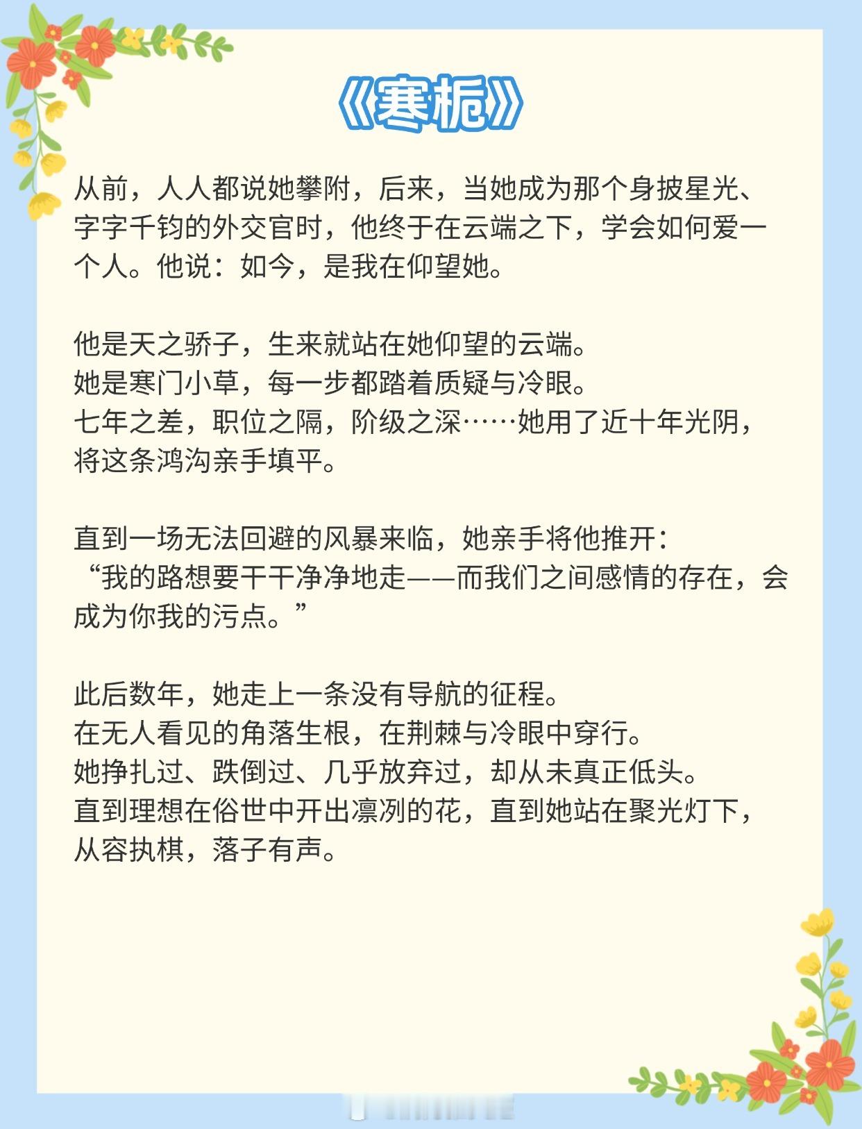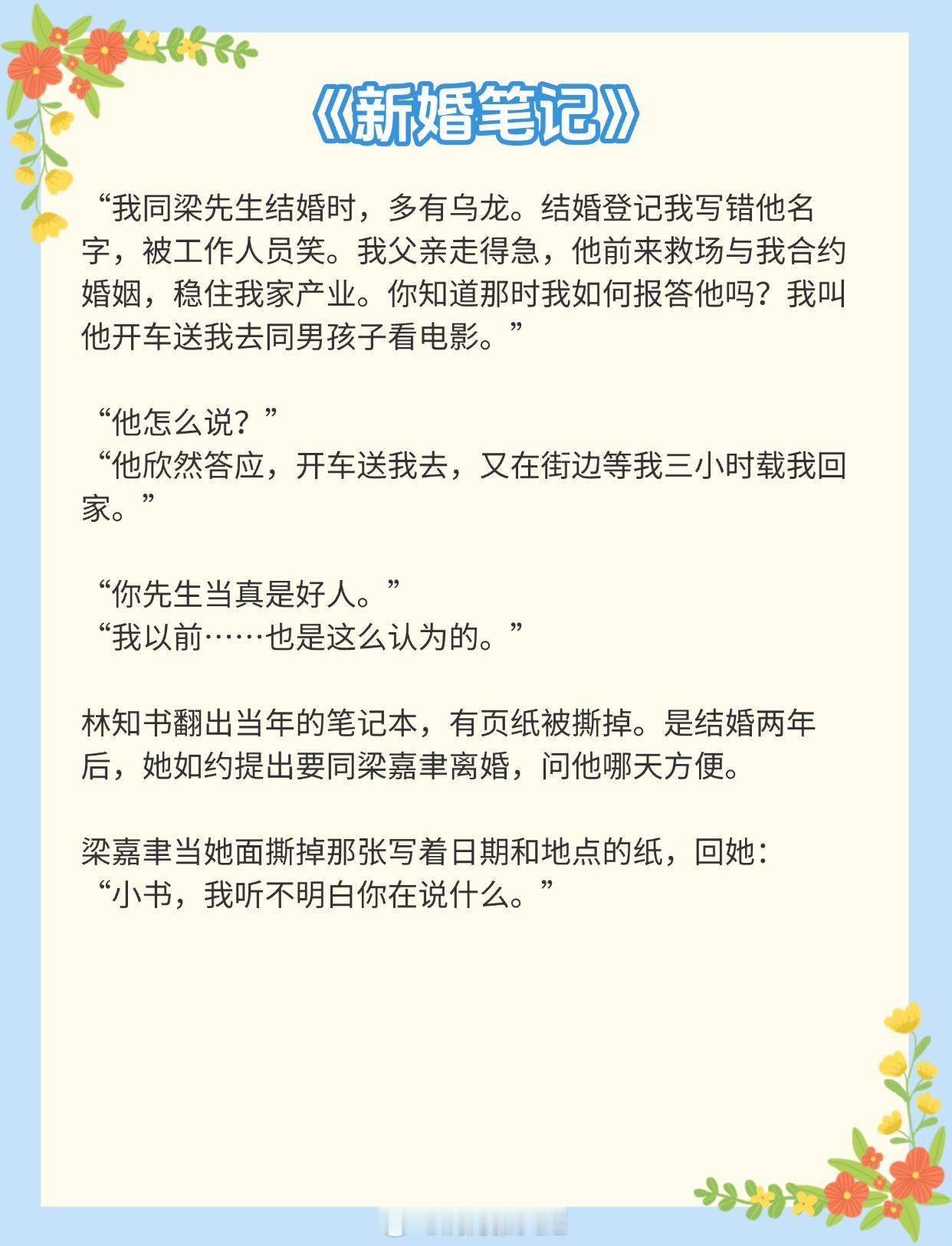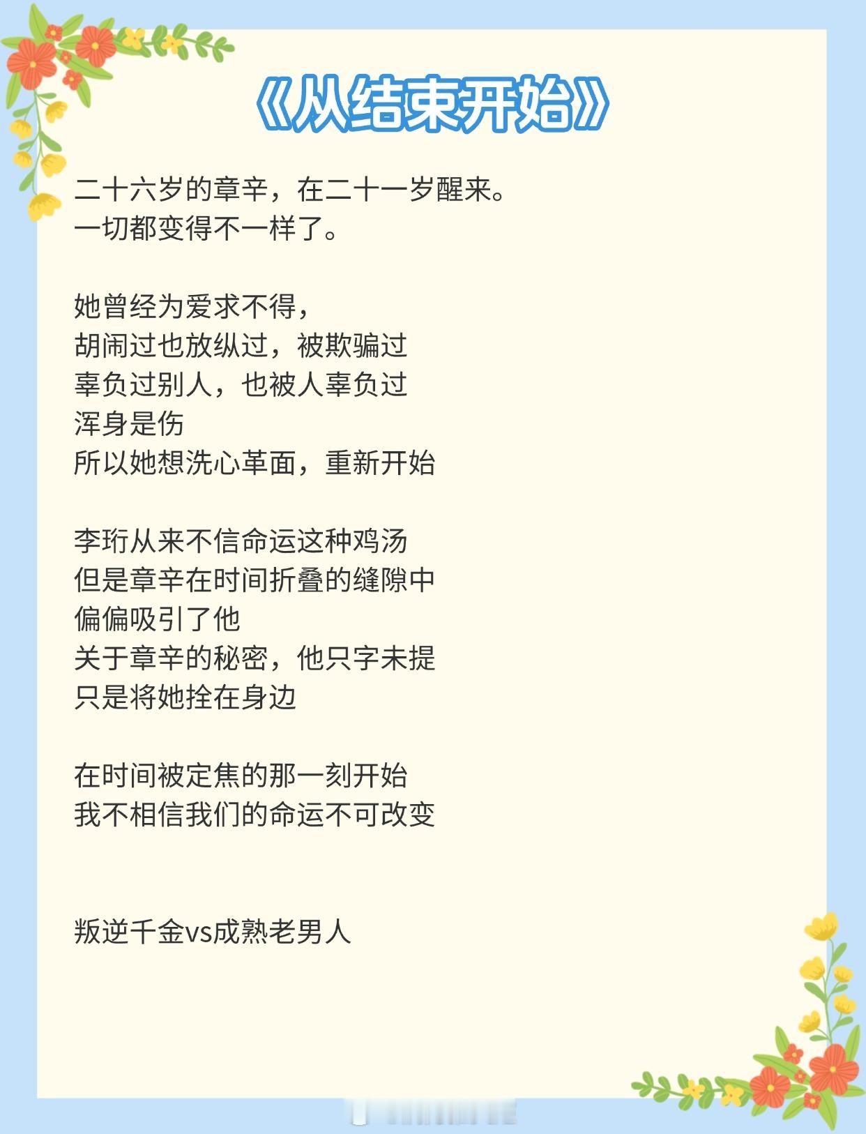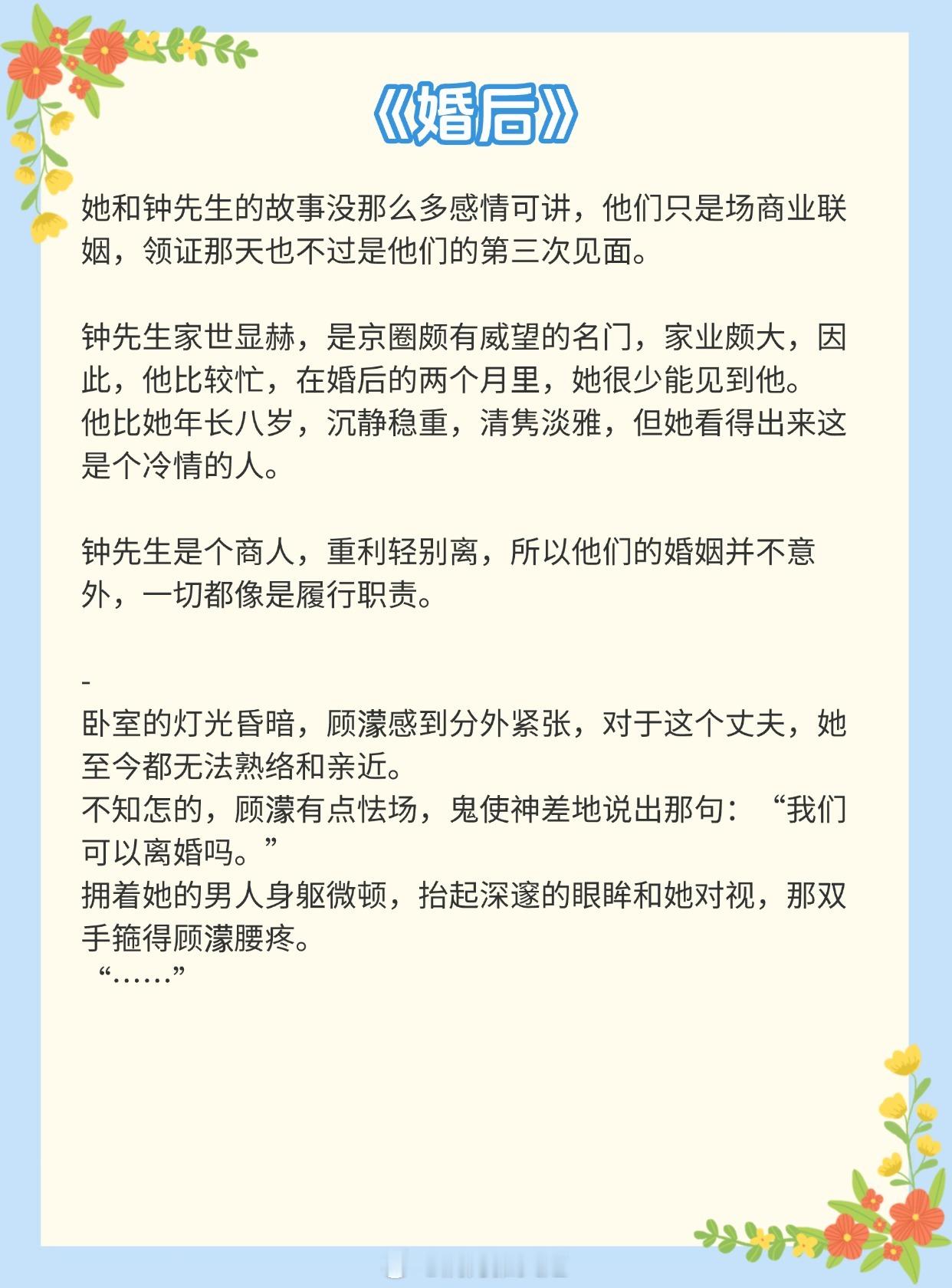 《从结束开始》作者:顾青姿《第一枝玫瑰》作者:纵虎嗅花《新婚笔记》作者:春与鸢《寒栀》作者:雾里青《暗熟》作者:唯酒《八分熟》作者:周六不更《当冬夜渐暖》作者:纯圆皇后《夜雾》作者:殊娓《婚后》 作者:暮阿洋推文推文言情小说推荐