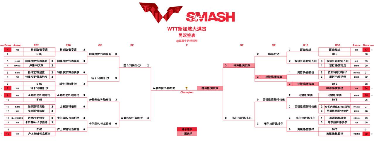 “中石油组合”应该是2026新加坡大满贯最大的惊喜吧! 这一站赛事,林诗栋和黄友政的男双还是挺争气的!也是唯一的一对双打组合闯进了决赛,虽然一路打的颤颤巍巍,但是能打进决赛,也是很大的进步! 今天林诗栋和黄友政最大的进步是: 当黄油被对手压制时,石头能站出来扛一扛,当石头被压制了,黄油也能站出来顶,一句话,今天没有怂,毕竟对手也是多哈世乒赛的季军组合! 下一轮的男双决赛,将对阵法国的勒布伦兄弟,又是一场硬仗和考验,小将加油吧! WTT新加坡大满贯丨男双半决赛 林诗栋/黄友政🇨🇳 3-0 布尔拉萨德/多尔🇫🇷【11-5,13-11,11-9】