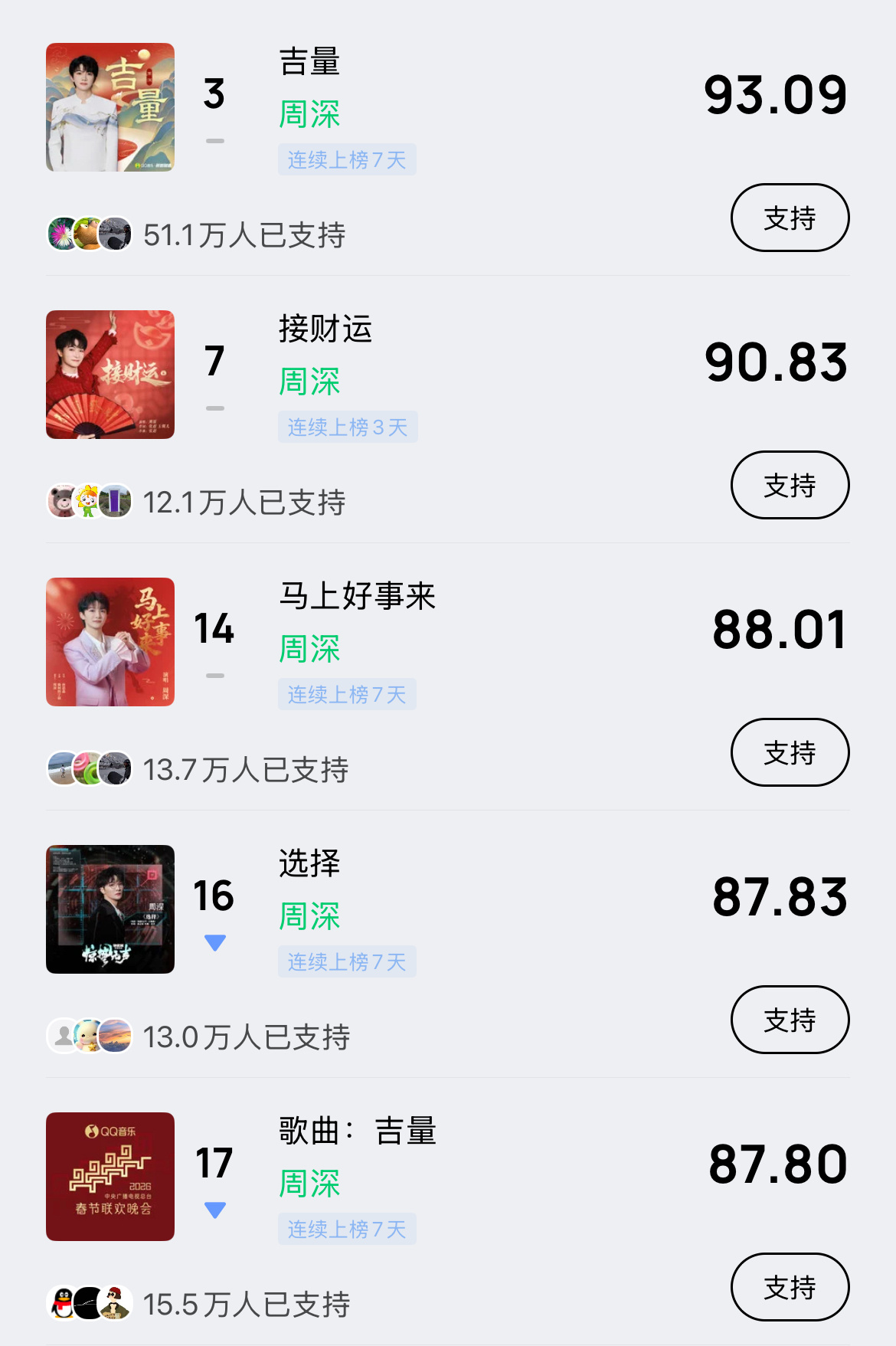 周深 📣 2.27 巅峰潮流 📣米米们晚上好,每歌做6个动作路径:Q音-乐馆-排行-潮流巅峰
