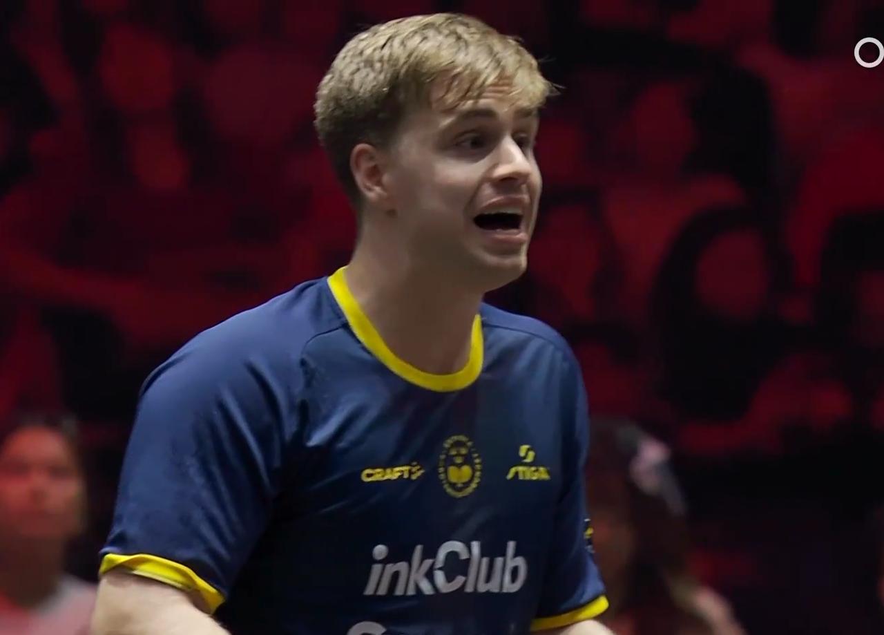 我去!莫雷加德情绪崩溃了! 第一局 泊雷特把莫雷加德打懵了。 泊雷特开局5:2领先 小莫追到了9:9平, 关键时刻, 小莫等泊雷特失误, 结果泊雷特发挥很好, 两个拉直线, 11:9拿下首局。 小莫崩溃了, 回去的时候, 将哥哥递过来的水, 一甩手打飞了。