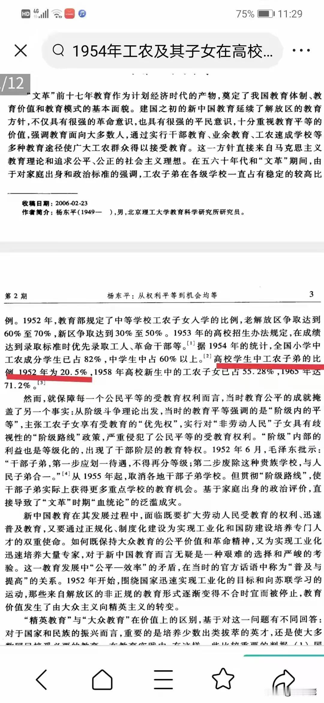 1952年工农子女在高校就读的比例20.5% 。 “教育必须为无产阶级政治服务,必须同生产劳动相结合”。 1954 年的《中华人民共和国宪法》 以国家根本大法的形式将新中国教育为人民大众服务的性质确定下来!大学工农子弟比例逐年提高! 1954年工农子女在高校就读的比例提高到21.94%! 教育必须为无产阶级政治服务,必须同生产劳动相结合。要实行劳动人民知识化,知识分子劳动化。 【毛主席为什么要暂停高考?如今才看懂伟人的高瞻远瞩 伟人 高考】 点击链接打开👉 Idoy8qpRxLU` eRk:/ q@e.Ox :2am