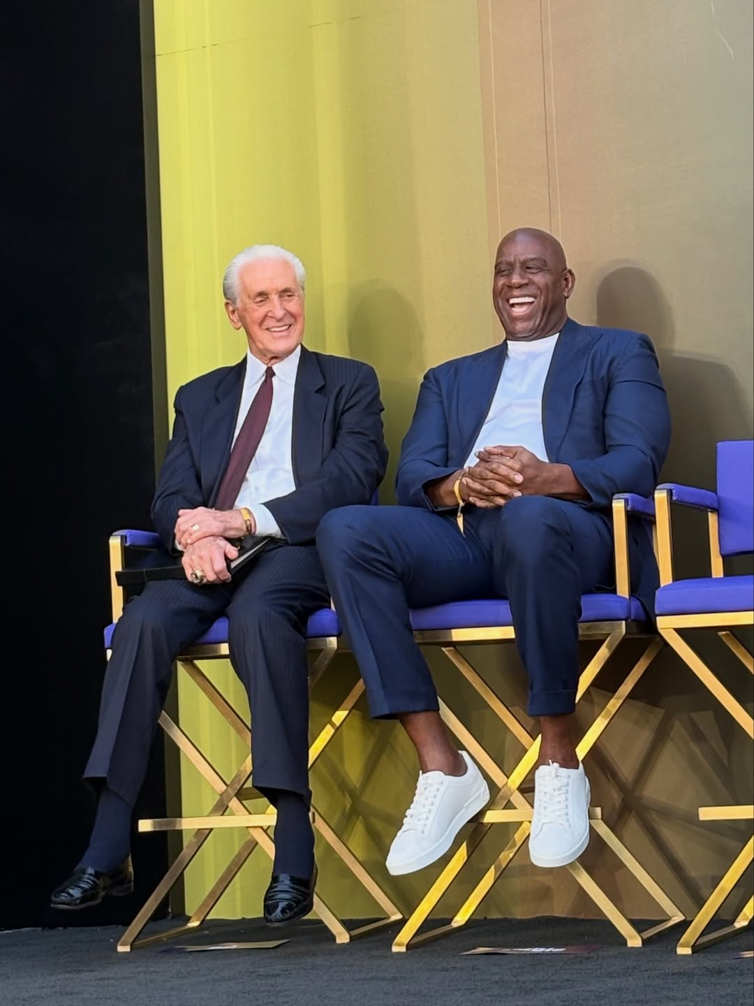 “很棒的一个周末!我的名人堂教练得到了他应得的荣誉!帕特-莱利是历史上最伟大的主教练之一,他在湖人赢得了六座NBA总冠军。帕特-莱利作为主教练率领我们八次打进总决赛,四次夺得NBA总冠军,同时他作为助理教练和球员也各得到了一座!跟我的老队友见面总是很快乐!”魔术师约翰逊附文道。
