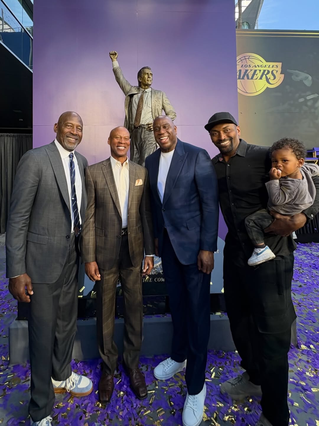 虎扑02月27日讯前NBA球员魔术师约翰逊更新Ins,晒出一组自己参加帕特-莱利雕像揭幕仪式的照片与球迷分享。