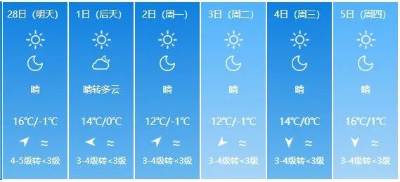 28日:我市各地晴。午后沿江河谷地区有5级左右阵风,高海拔地区有8级左右阵性大风。