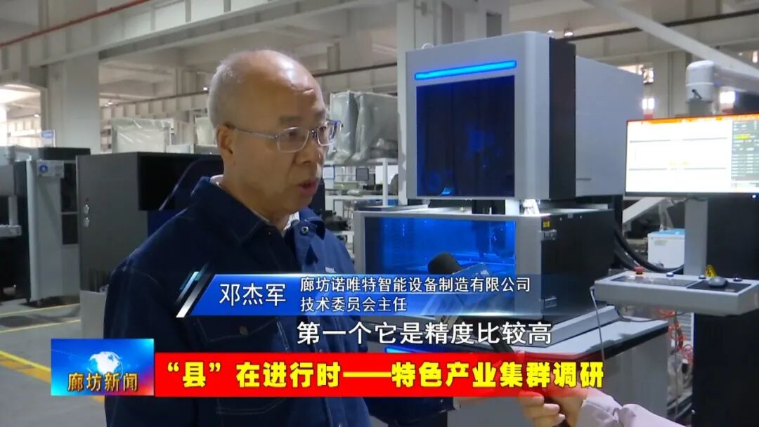 廊坊诺唯特智能设备制造有限公司技术委员会主任邓杰军:第一个它是精度比较高,自动化程度也比较高,同时就说是因为我们所有的设备都有自主知识产权,那么我们可以根据客户的需求做一些定制的设备,你比如说它需要加旋转轴,我们可以带第六轴,我们这个设备出来以后,现在可以基本上替代中高端的进口。