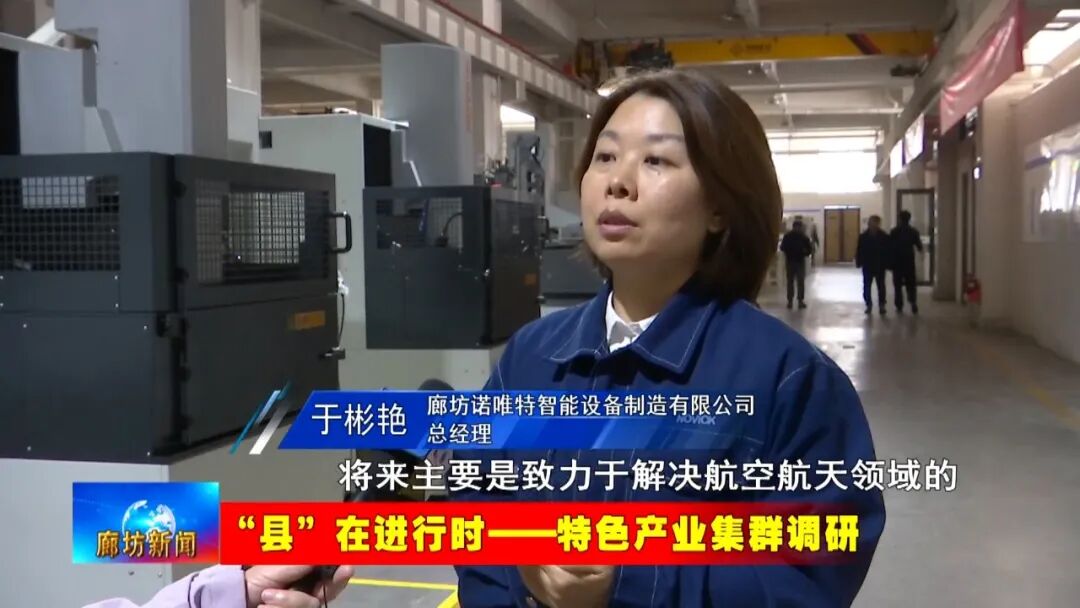 廊坊诺唯特智能设备制造有限公司总经理于彬艳:将来主要是致力于解决航空航天领域的一个特殊结构加工的瓶颈,我们会专注于提供自动化线这样一个整体的定制化解决方案。