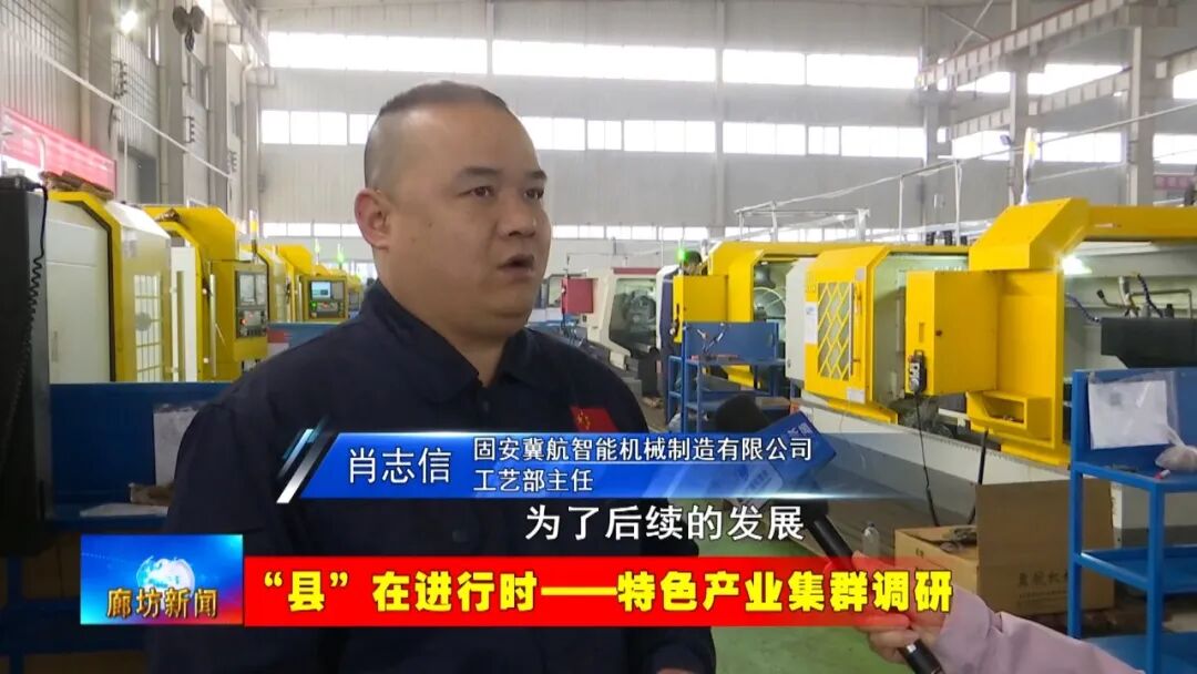 固安冀航智能机械制造有限公司工艺部主任肖志信:为了后续的发展,我们同时也(加强)校企合作,比如说清华大学、北理工增加技术交流,走好每一步,为固安航空航天产业链作出我们公司的一份力量。