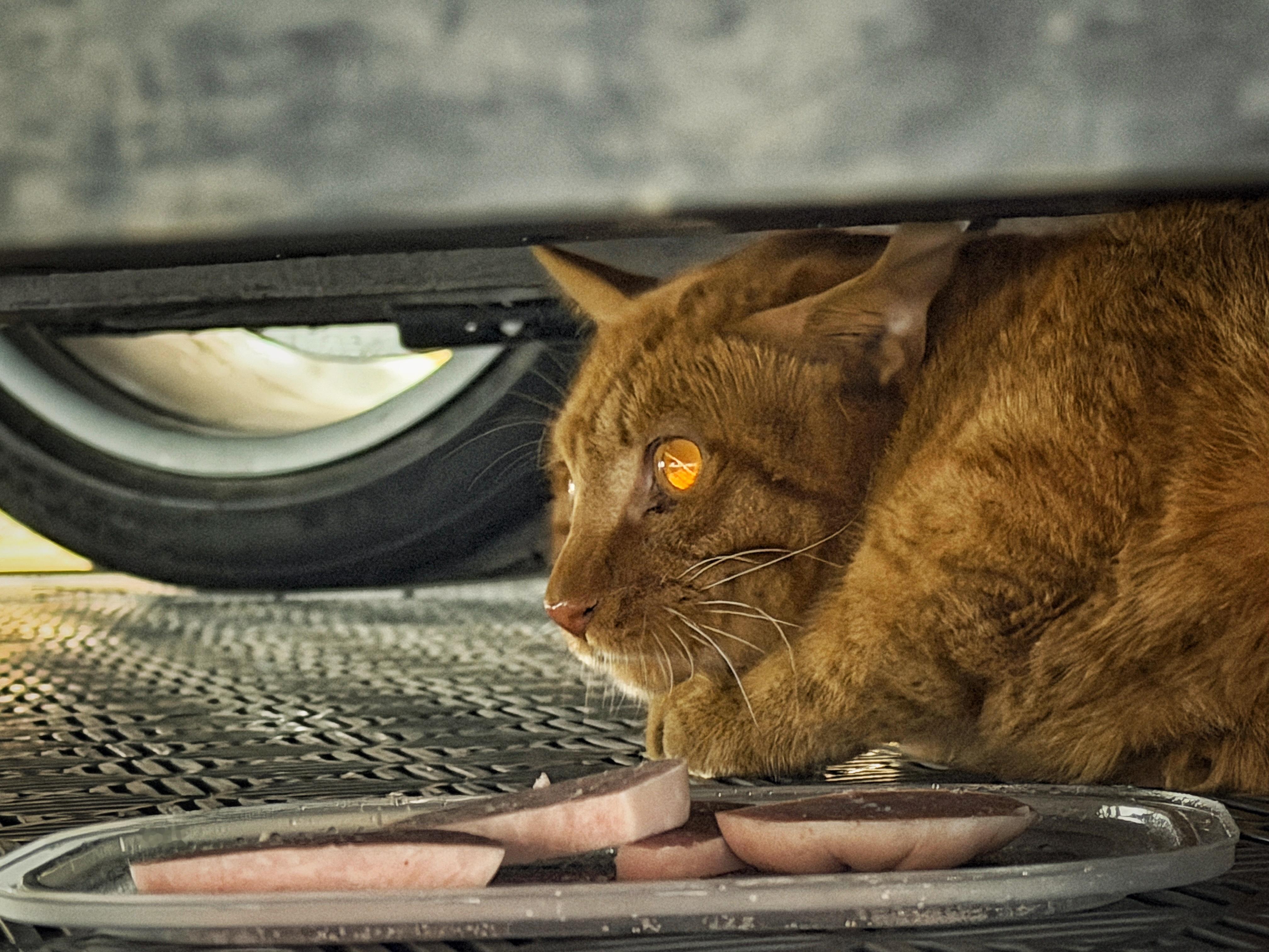 家里车库来了只怪兽🐈,小脏抓到处踩脚印,在兰博车衣上留毛,在保时捷车衣上尿尿抓孔,为非作歹,无恶不作👿。人进出的时候它从不做声,后来在大牛车底下找到这只猫咪。小家伙应该是趁我开车库门的时候溜进来的,昨天我就闻到味了,关在这里估计有两天,车库里没吃没喝应该挺难受。赶紧整了点火腿和牛奶🥛给它,但猫咪很怕不敢吃,嘤嘤叫的可惨了,最后还是得开车库门把它先请走。现在猫粮已买好,回头车库外面专门放个角落,保证小家伙有饭吃,欢迎你再来🐱 欣哲频道流浪猫